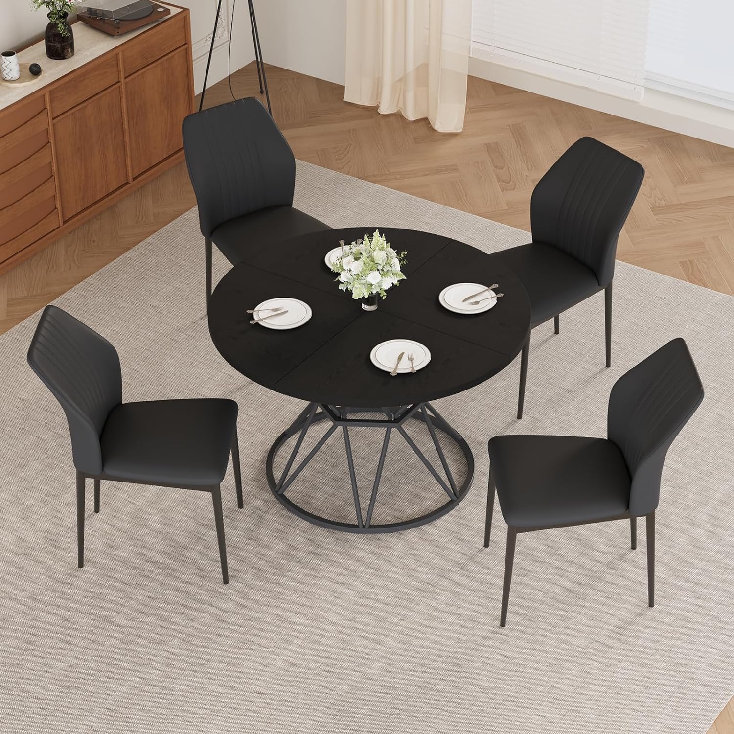 5-Piece Round Dining Table Set - Our dining room table and chairs includes one dining table and four dining chairs.Whether for family gatherings or party events, it provides ample dining space.
