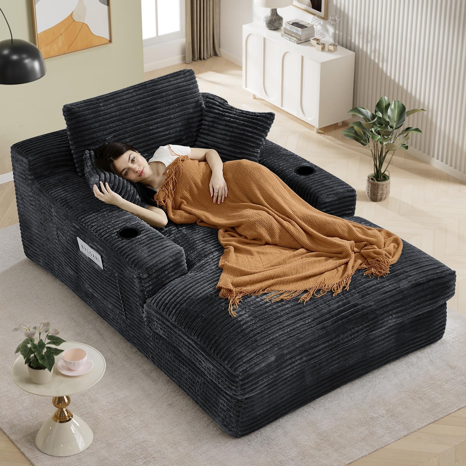 Ultimate Comfort: Made of high-quality soft corduroy, the boneless chaise lounge is skin-friendly and delicate to the touch. The fluffy texture fits your body and brings you a luxurious hug like a cloud. The seat cushion is filled with high-density foam to ensure long-lasting comfort and support!
