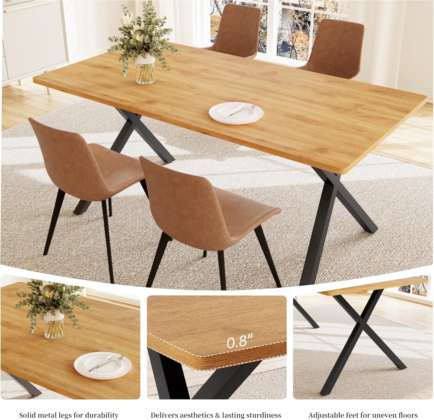 • 5-Piece Dining Table Set for 4-6 People, 63" MDF Kitchen Table with 4 Upholstered Chairs, Metal Legs for Dining Room, Kitchen(Oak Table+4 Brown Chairs)