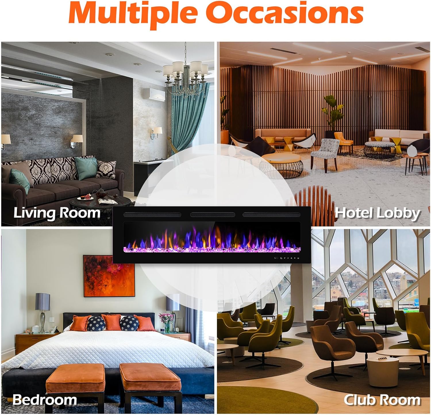 WARM & INVITING : The heat comes out the middle of the upper part of the front, which concentrate more heat and make it warmer; Temperature settings from 62F to 82F and timer from 1H to 8H adjustable; It puts out enough heat and makes the room so cozy, SUITABLE FOR ABOUT 400 SQ FT SPACE.