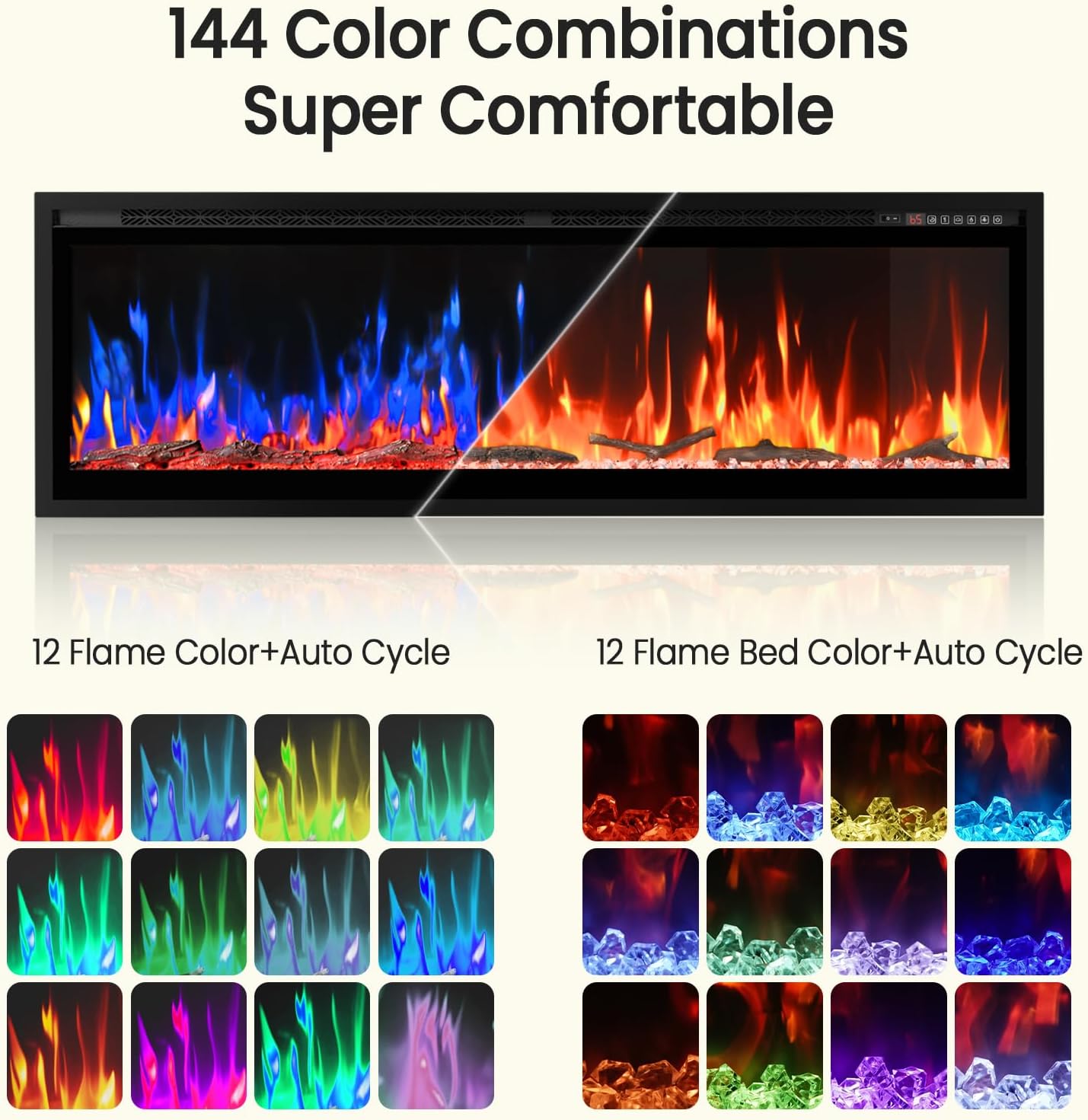 Realistic Flame Effects with Crackling Fire SoundExperience the cozy warmth and charm of a smart electric fireplace. With 12 flame colors and 12 ember bed colors featuring an auto-cycle mode, plus 3 adjustable flame speeds and 5 brightness levels, you can easily set the perfect mood for any room. Paired with realistic crackling firewood sounds with 3 volume options, this fireplace creates a fully immersive fireside experienceday or night.