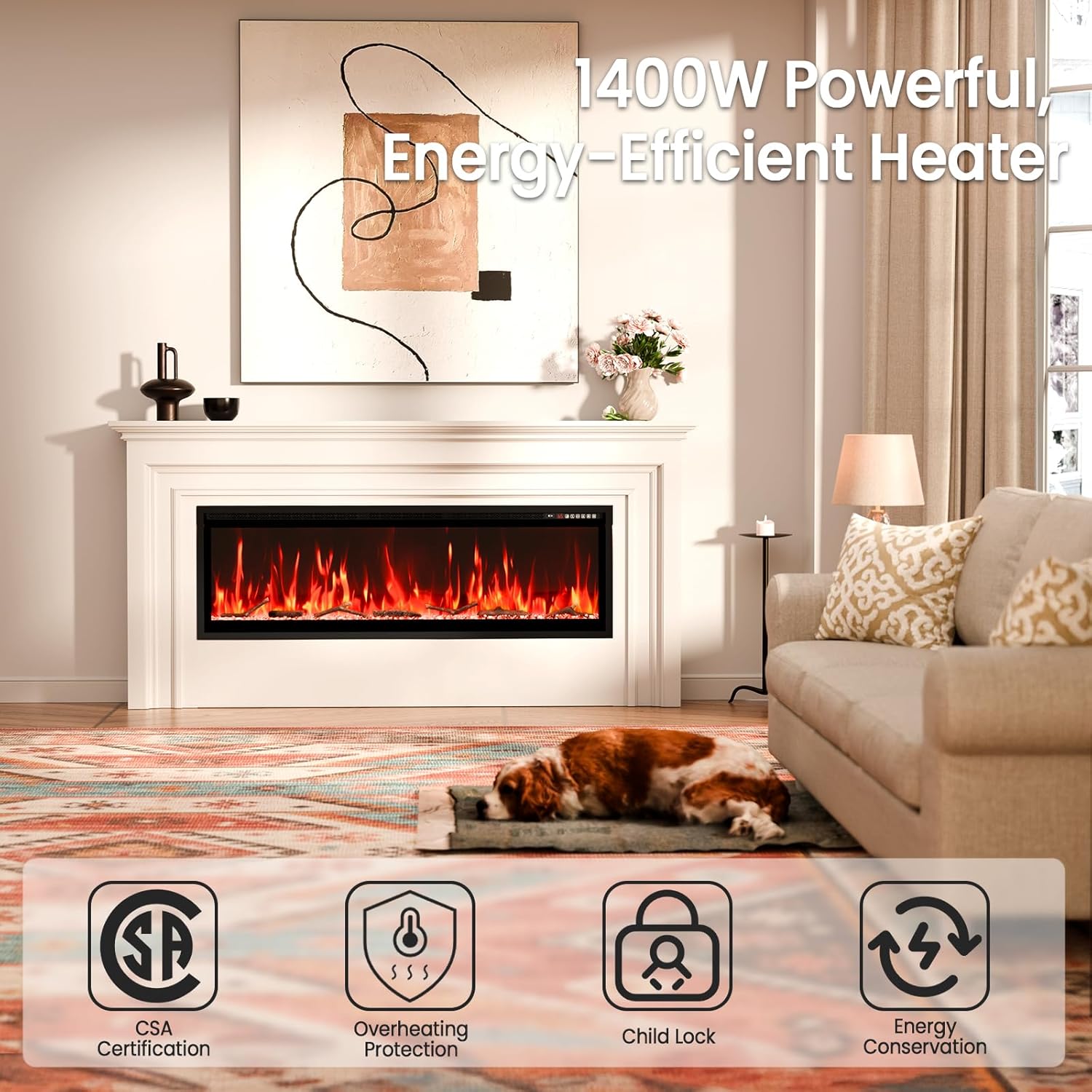 Safety FeaturesCSA-certified smart electric fireplace with overheat protection and child lock ensures safe, worry-free enjoyment for your home.