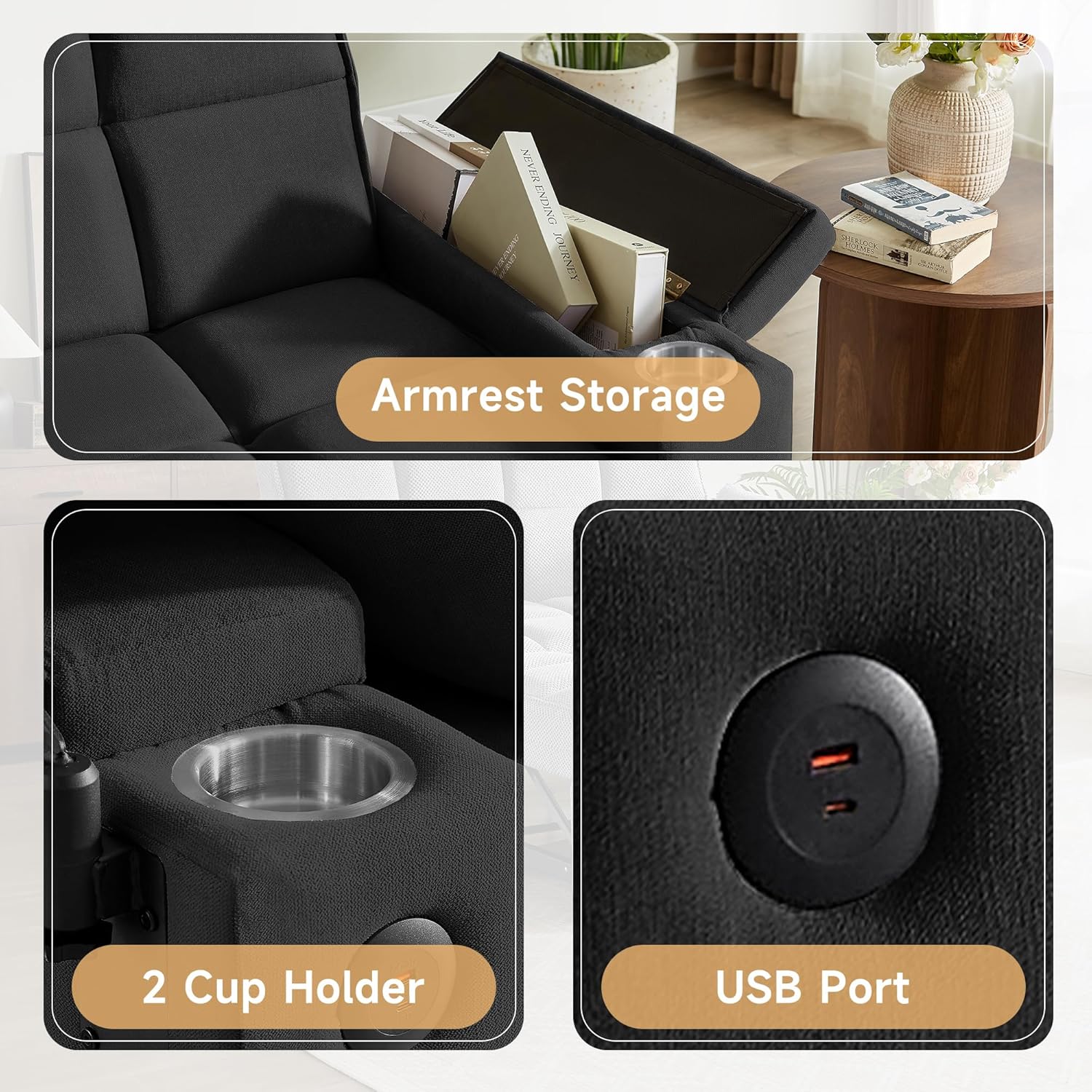 Functional Storage Armrest Table Built-in armrest table offers convenient space for drinks, books, or devices, featuring a cup holder for everyday practicality.