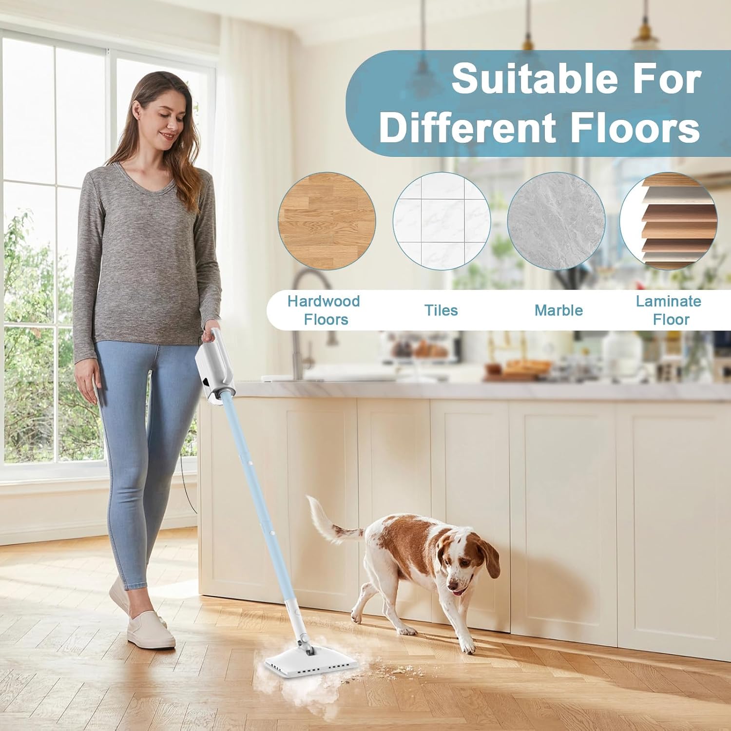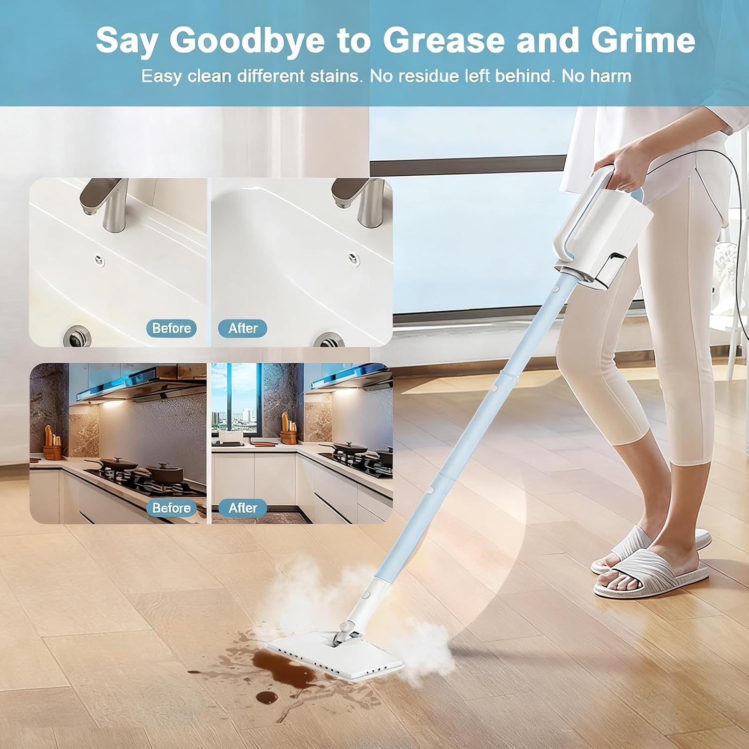 Reliable Support and Online Service steamer mop with an extra year of maintenance service and online support for you! If you have any problem, please tell us. Steam floor cleaner allows for simple and efficient cleaning, leaving floors spotless, so we can say goodbye to grease and grime and create a fresh and pleasant living space.
