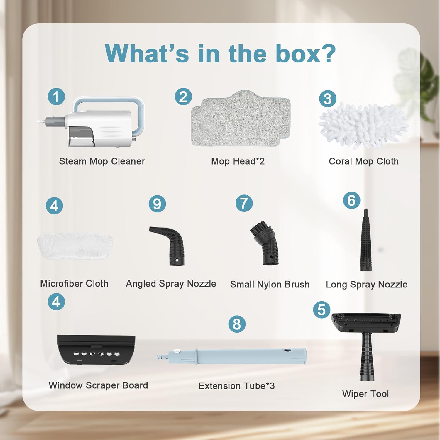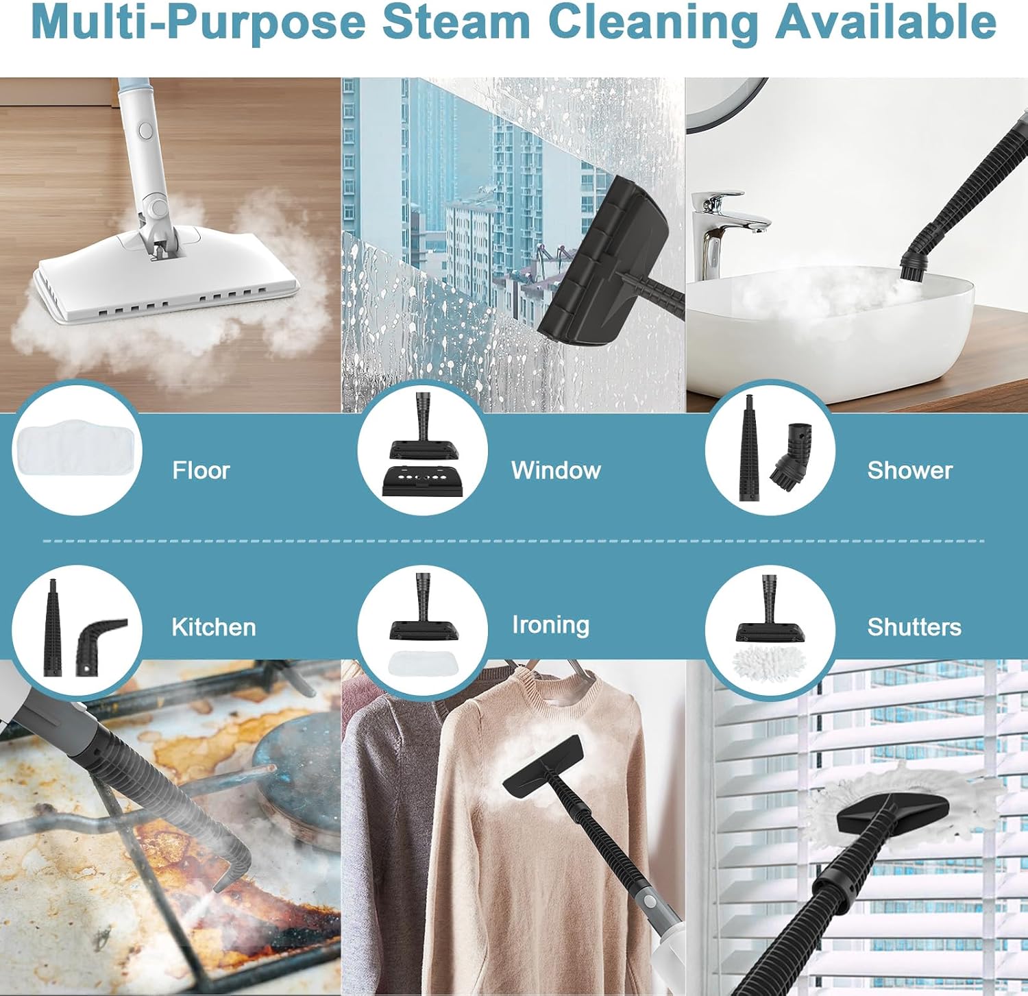 Versatile 7-in-1 Cleaning with 5 Attachments From sealed floors to bathroom tiles, kitchen stovetops, and even curtains, this steam cleaner for home adapts to any surface. Includes 5 specialized attachments for windows, desktops, basic ironing, and moremaking it your all-in-one home cleaning partner.