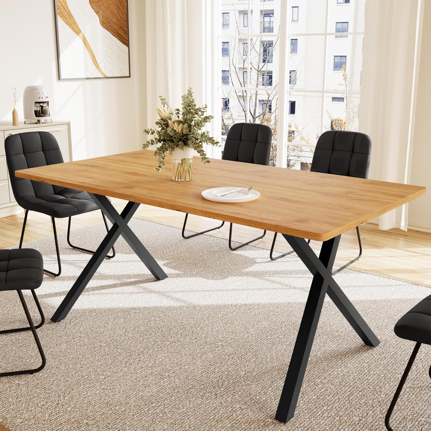 Modern Kithcen Table and Chairs Set: This dining room table set for 6 features a 63"D x 33.48"W x 30.13"H table, comfortably seating 6 for daily meals. Ideal for family dinners, hosting friends, or holiday partiesplenty of space for everyone!