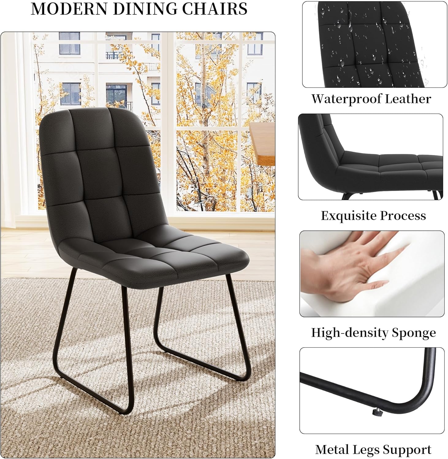 Ergonomic Dining Chairs: The modern kitchen chairs feature high-quality PU leather upholstery, ergonomic curved backs, and high elastic sponge for comfort and durability. And its incredibly easy to cleanjust wipe with a damp cloth to keep it.
