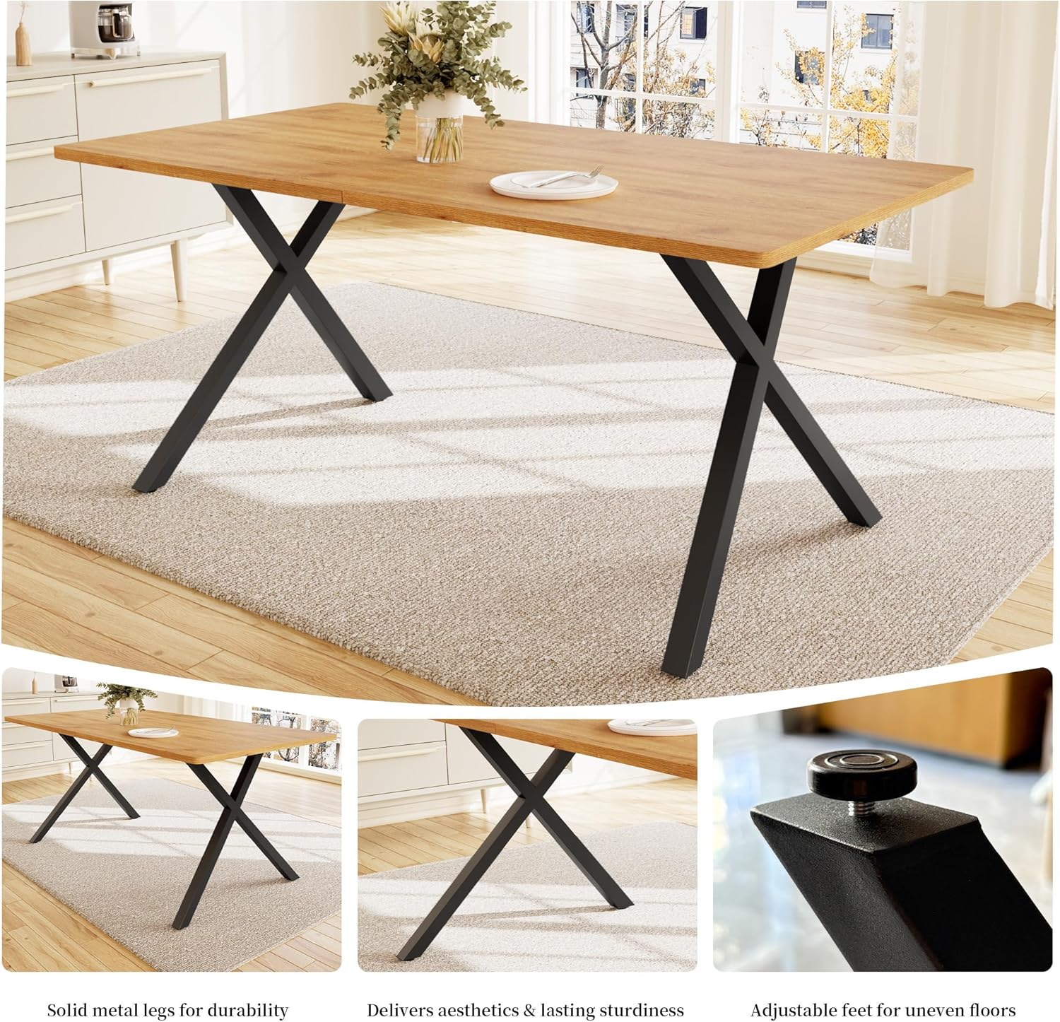 Durability and Sturdy: Crafted from high-quality MDF, water-resistant and waterproof. Supported by X-shaped metal legs for exceptional stability and long-lasting durability, it can hold up to 130 lb. Adjustable leg pads keep the table level on uneven floors, preventing floor scratches.