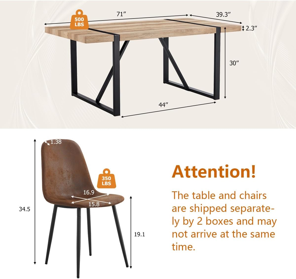 [Premium After-Sales Service] : The dining room sets for 6 is shipped in multiple packages, so you may receive the table and chairs separately on different time. Our professional team is available to assist you with any inquiries or concerns. Reach out to our customer service center, and we'll respond within 24 hours to address and resolve your issues promptly.