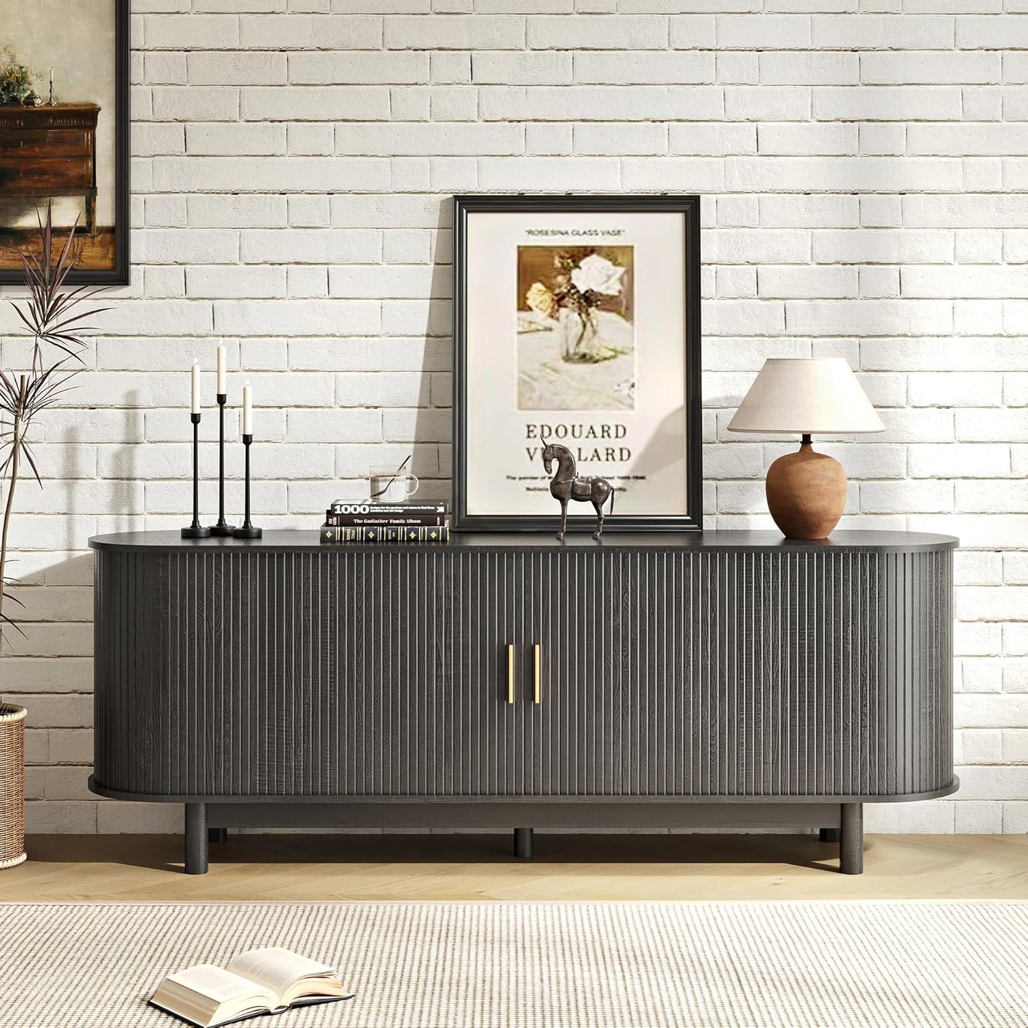 Ample Storage Space: This media console is as functional as it is beautiful. It offers a versatile storage solution with four open compartments for easy access to items and two internal spaces concealed by smooth-sliding doors, helping you keep your living area tidy and organized.