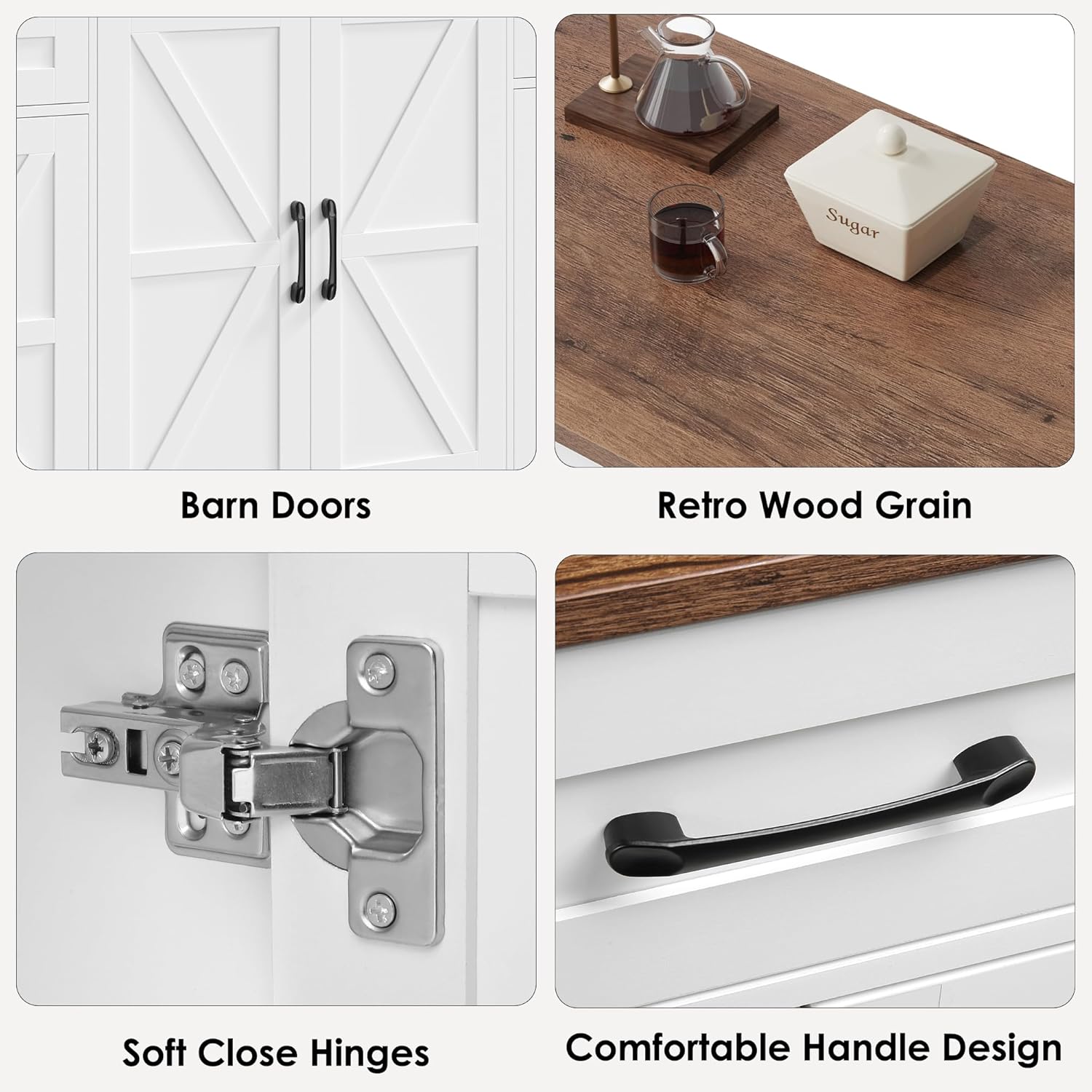 Classic Farmhouse Charm: A white buffet sideboard brings elegance to your home. The handcrafted X-shaped barn doors and sleek metal handles create a timeless farmhouse look that complements any dcor