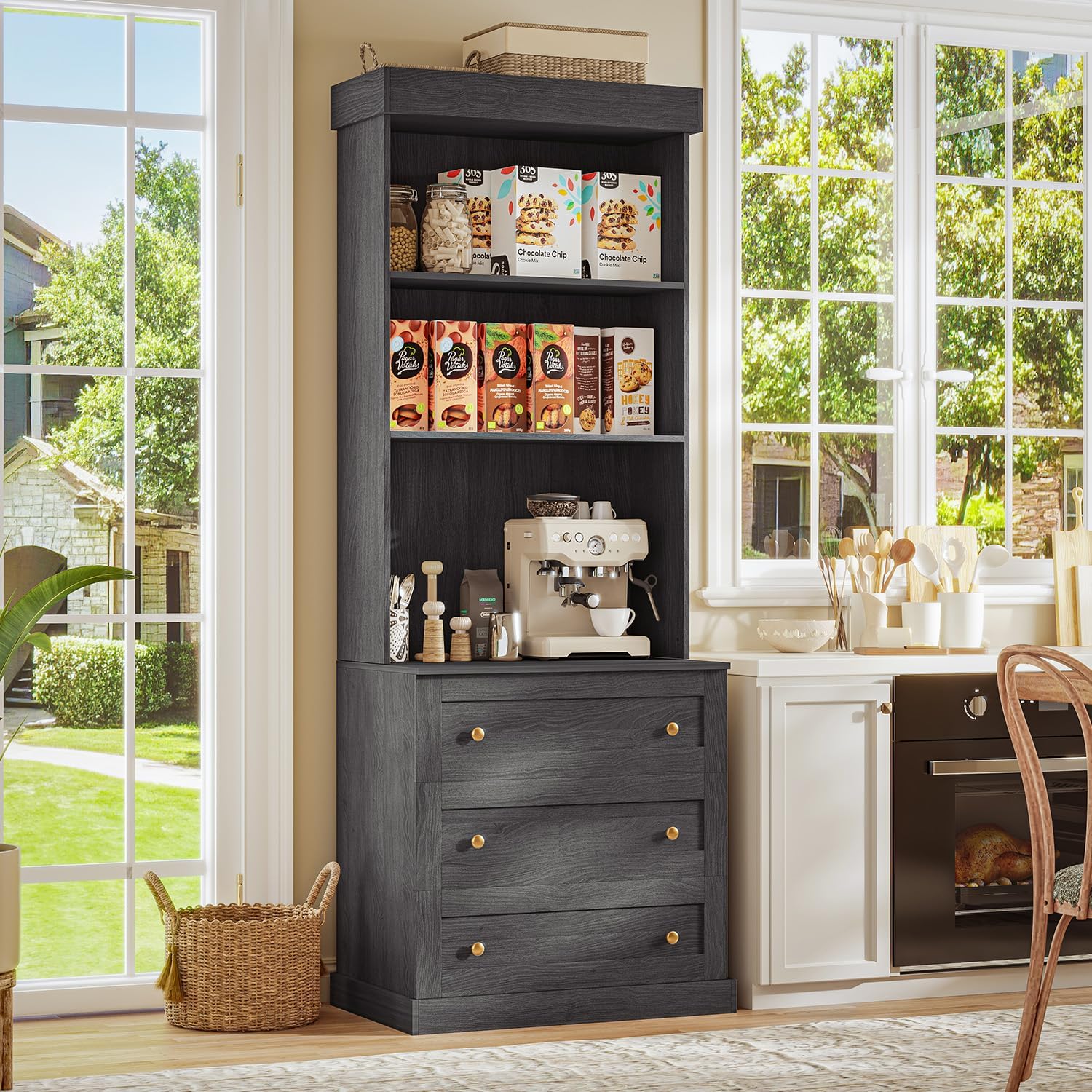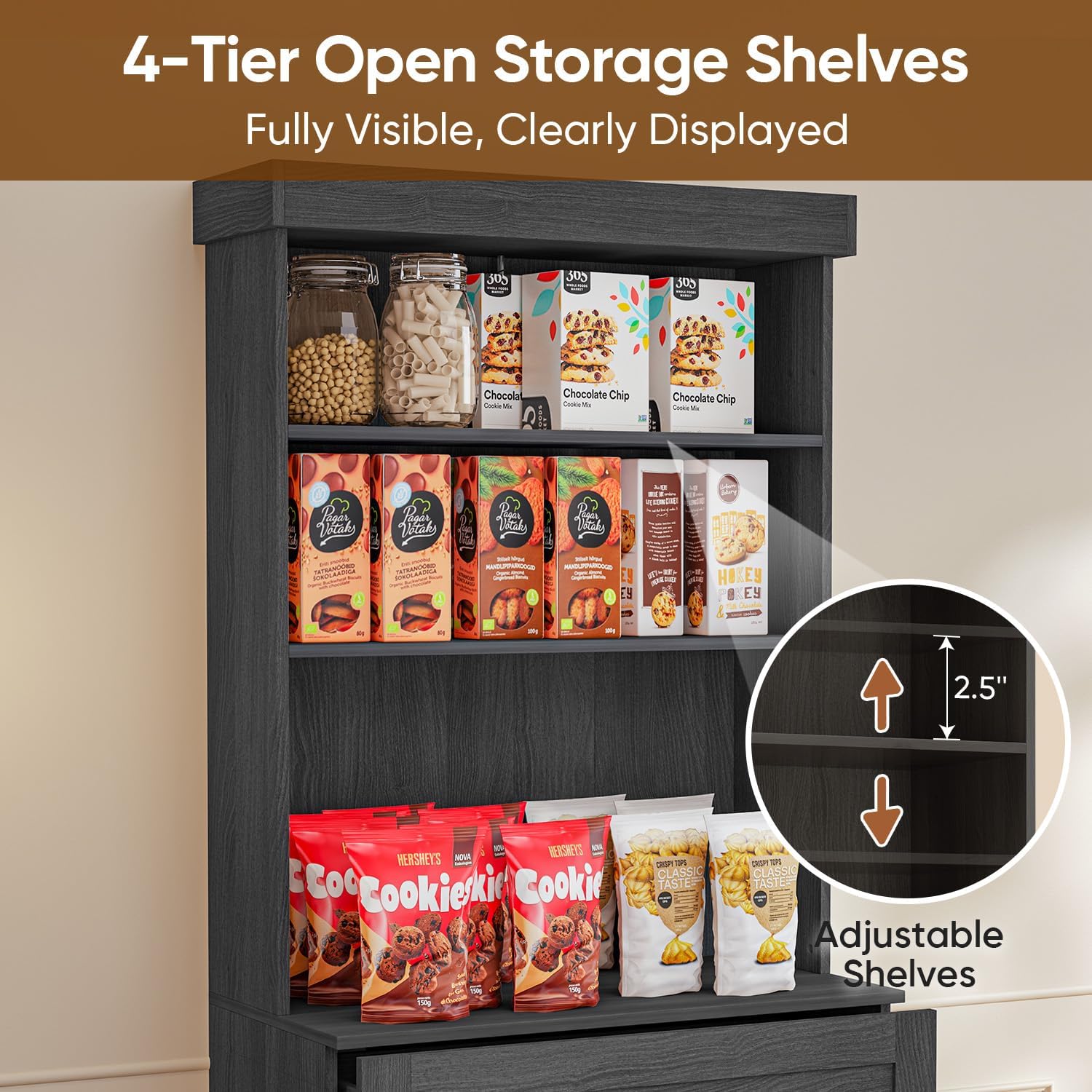 Glass Doors for Easy Display: The clear glass doors provide a beautiful way to showcase dishes, glassware, or decor. Whether used as a pantry cabinet or coffee bar, items stay neatly organized and easily accessible, adding sophistication to any room.