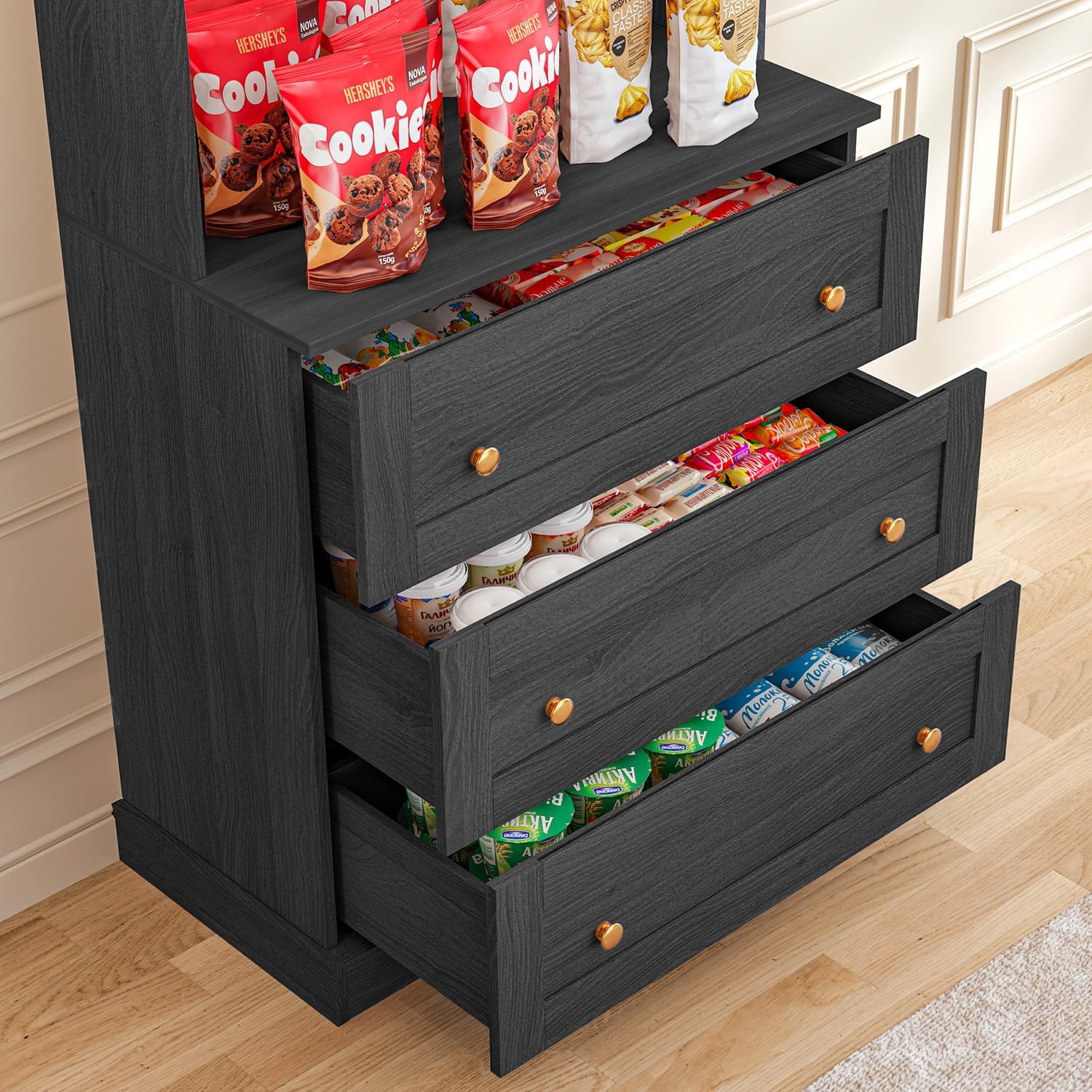 Sturdy and Durable: Made with premium materials, this coffee bar cabinet offers a stable and durable structure that stands up to daily use. Perfect for holding kitchen appliances, pantry supplies, or serving as a microwave stand, its designed for long-lasting performance.