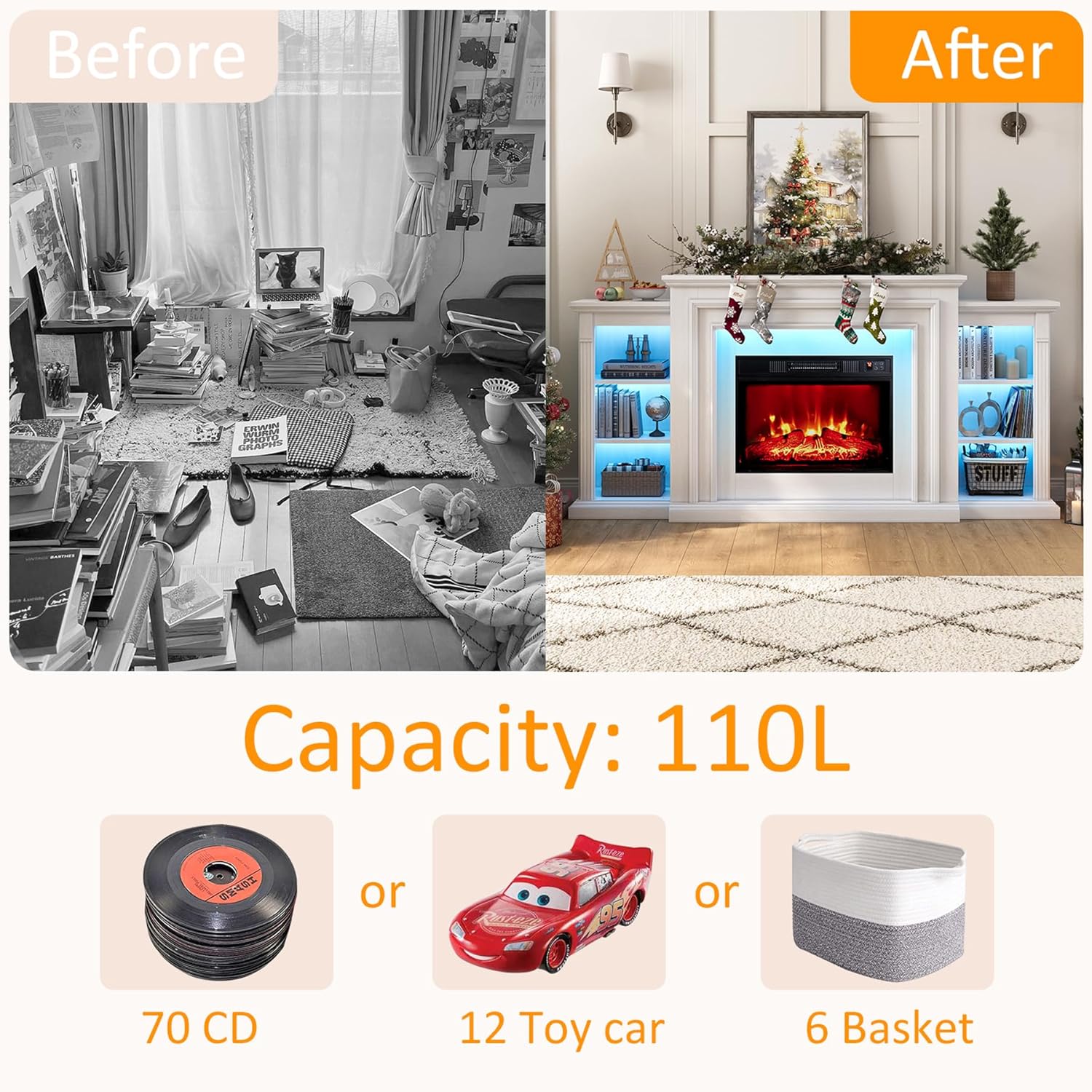 • 72" LED Lights Electric Fireplace with Mantel, Fireplace TV Stand for TVs Up to 80",Modern Entertainment Center with Storage, Delicate Three-Dimensional Molding with Remote Control for Living Room