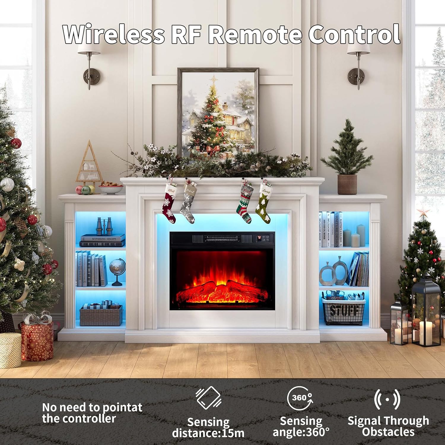 72" LED Lights Electric Fireplace with Mantel, Fireplace TV Stand for TVs Up to 80",Modern Entertainment Center with Storage, Delicate Three-Dimensional Molding with Remote Control for Living Room