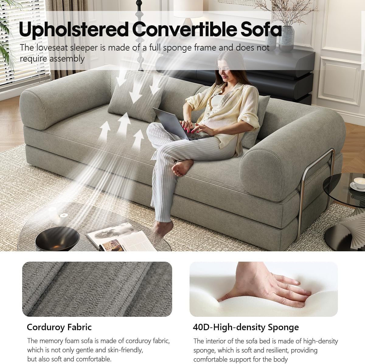 No Assembly RequiredNo complicated installation needed! This corduroy compression sofa bed is fully formed - simply open the box, put it in place and watch it expand to perfect fluffiness. No tools, no trouble - just relax immediately within 72 hours.