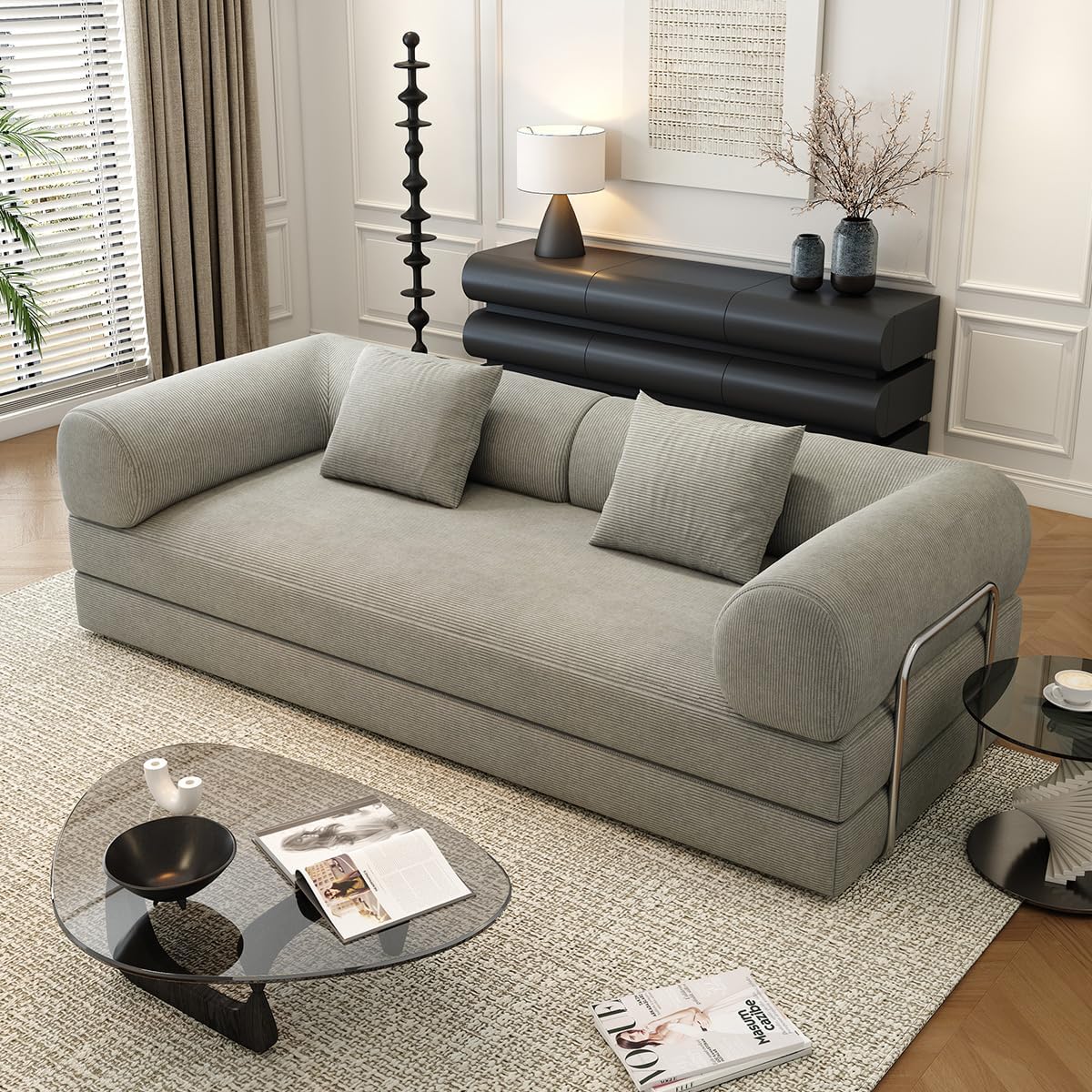 • 78.8" Modular Sofa Bed - 4-in-1 Convertible Design with Corduroy Fabric and High Density Sponge, Removable Cover and Fixed Frame