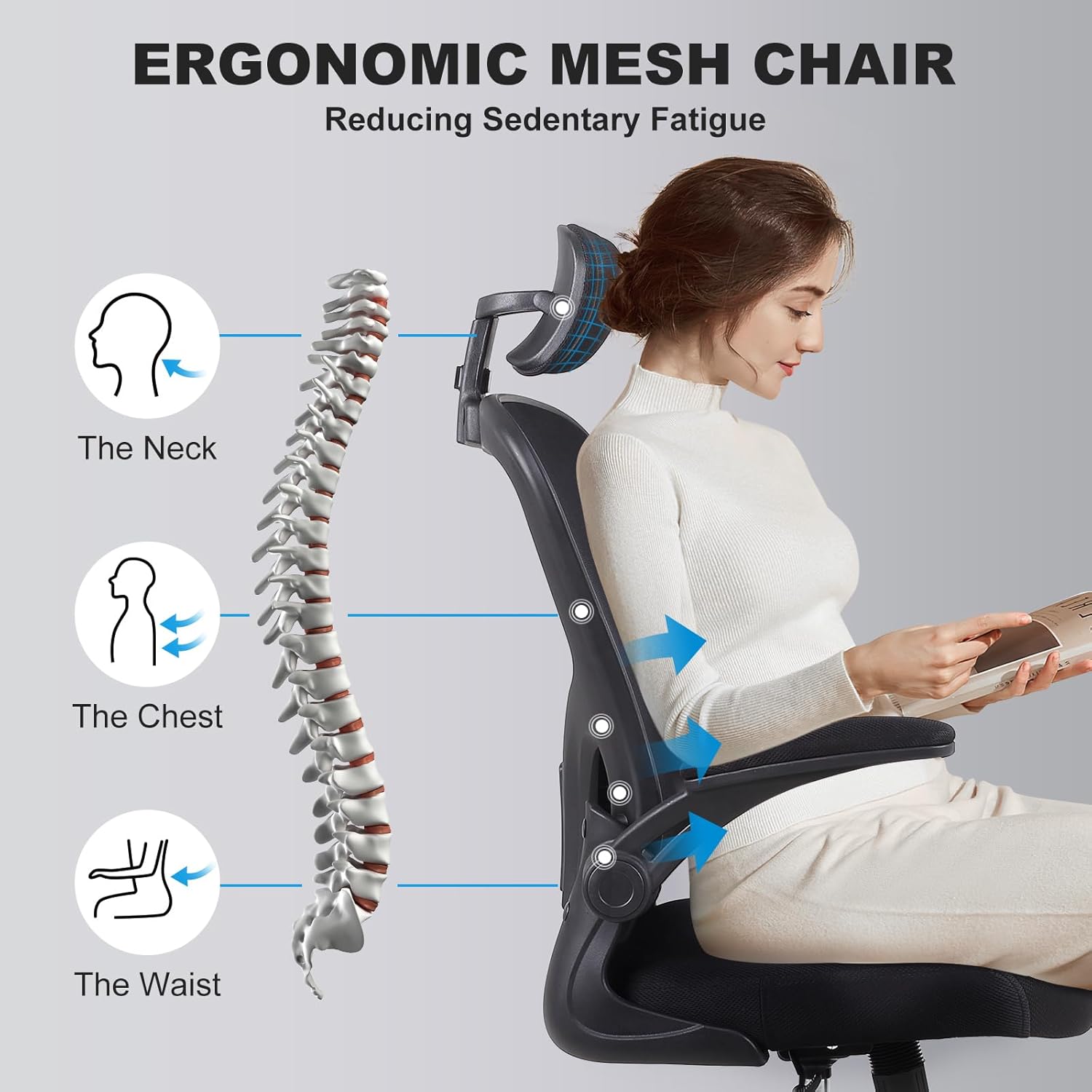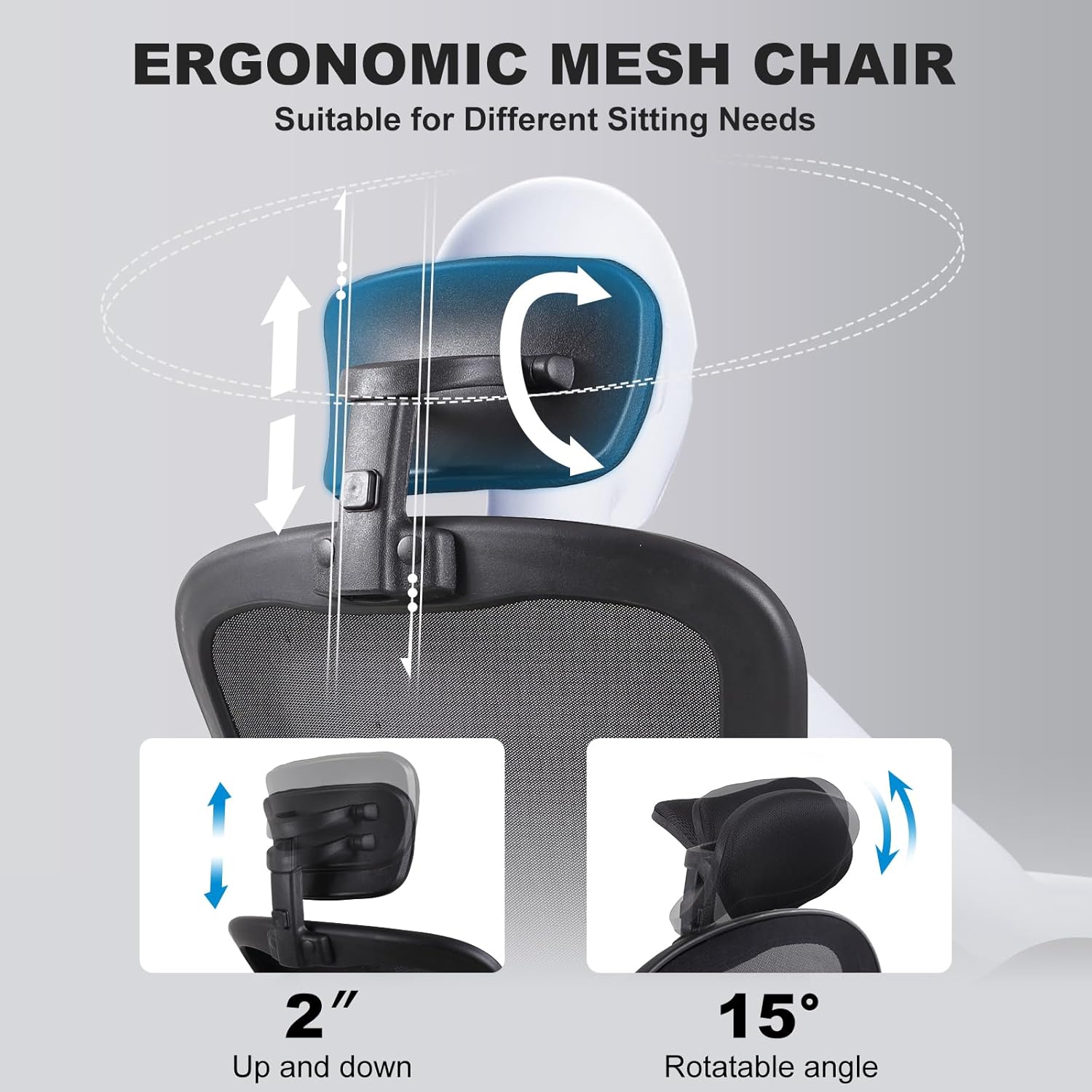 Flexible AdjustmentOffice desk chair with 4'' up and down adjustable seat height to meet the use of people of different heights. 90-120 adjustable backrest tilt angle to adapt to various sitting postures. Widened 3D curved foam headrest, adjustable height and angle, effectively support your head and neck