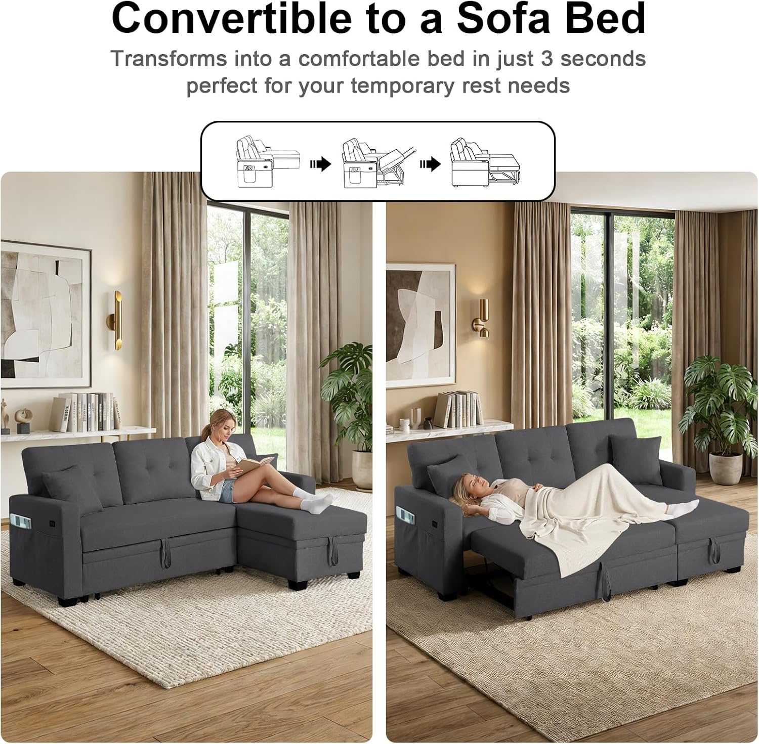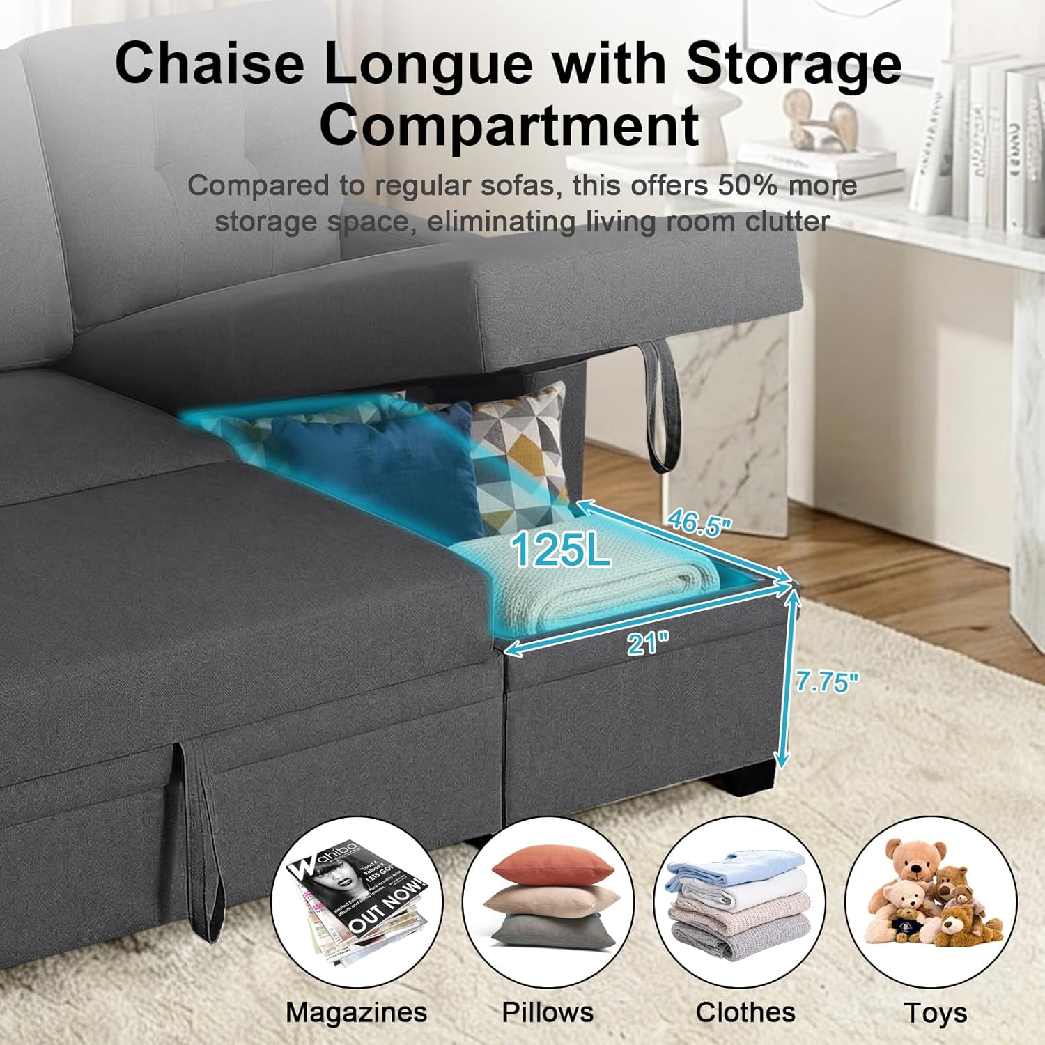 Premium Linen Fabric & Sturdy Build: Made with breathable linen fabric for a cool, skin-friendly feel, this sectional sofa sleeper features a metal-reinforced frame and high-density foam cushions for durable support and modern style