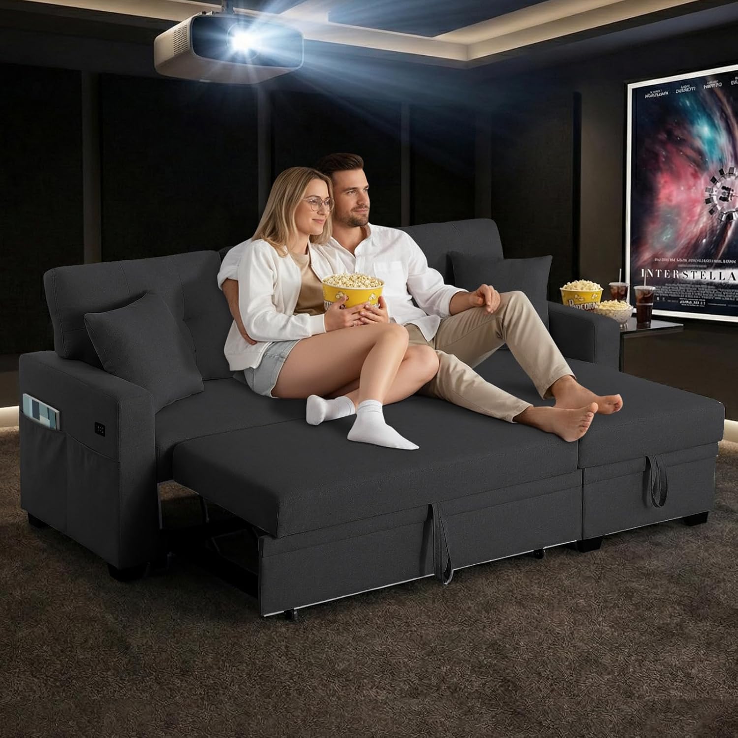 Convenient USB Charging: Built-in USB ports on the armrest allow device charging. Non-slip legs provide stability, and the smooth pull-out mechanism ensures easy conversion between sofa and bed