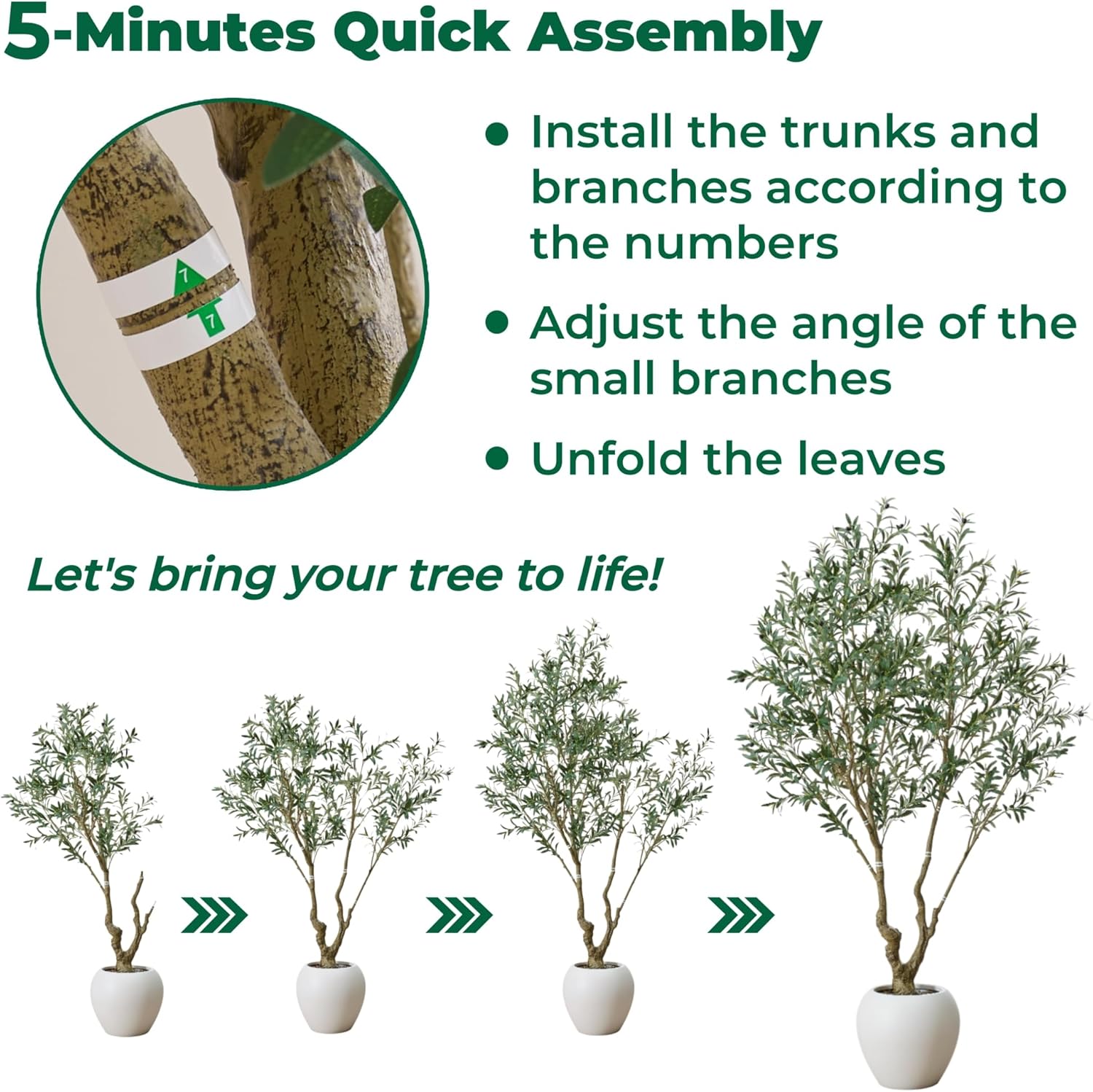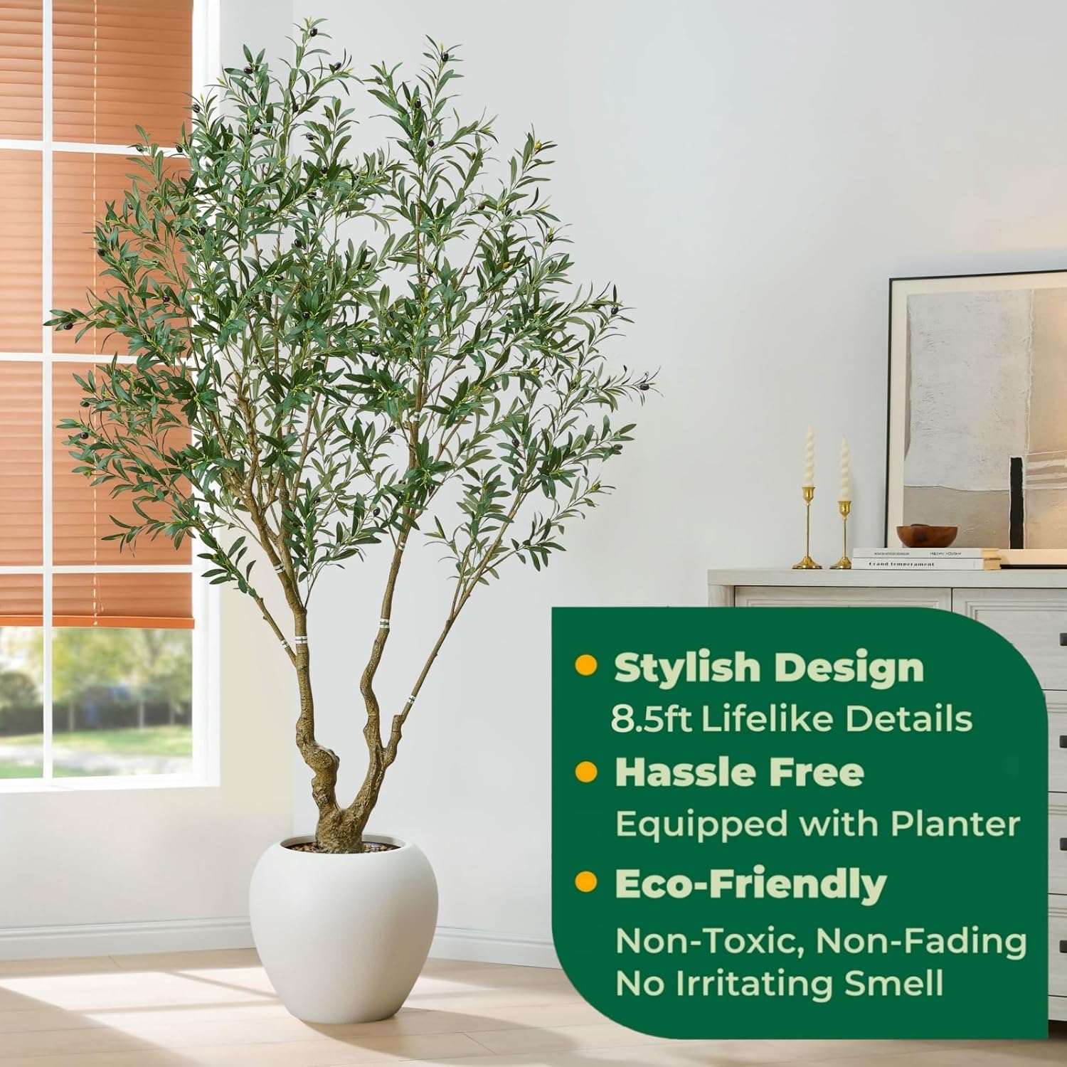 100% Maintenance-Free & Evergreen: Enjoy the beauty of an olive tree without any upkeep. It never needs water, sunlight, fertilizer, or pruning. It will not fade, wilt, or drop leaves, maintaining its fresh, vibrant appearance effortlessly through all seasons. Occasional dusting is all thats required, making it perfect for those with busy lifestyles or lacking a green thumb.