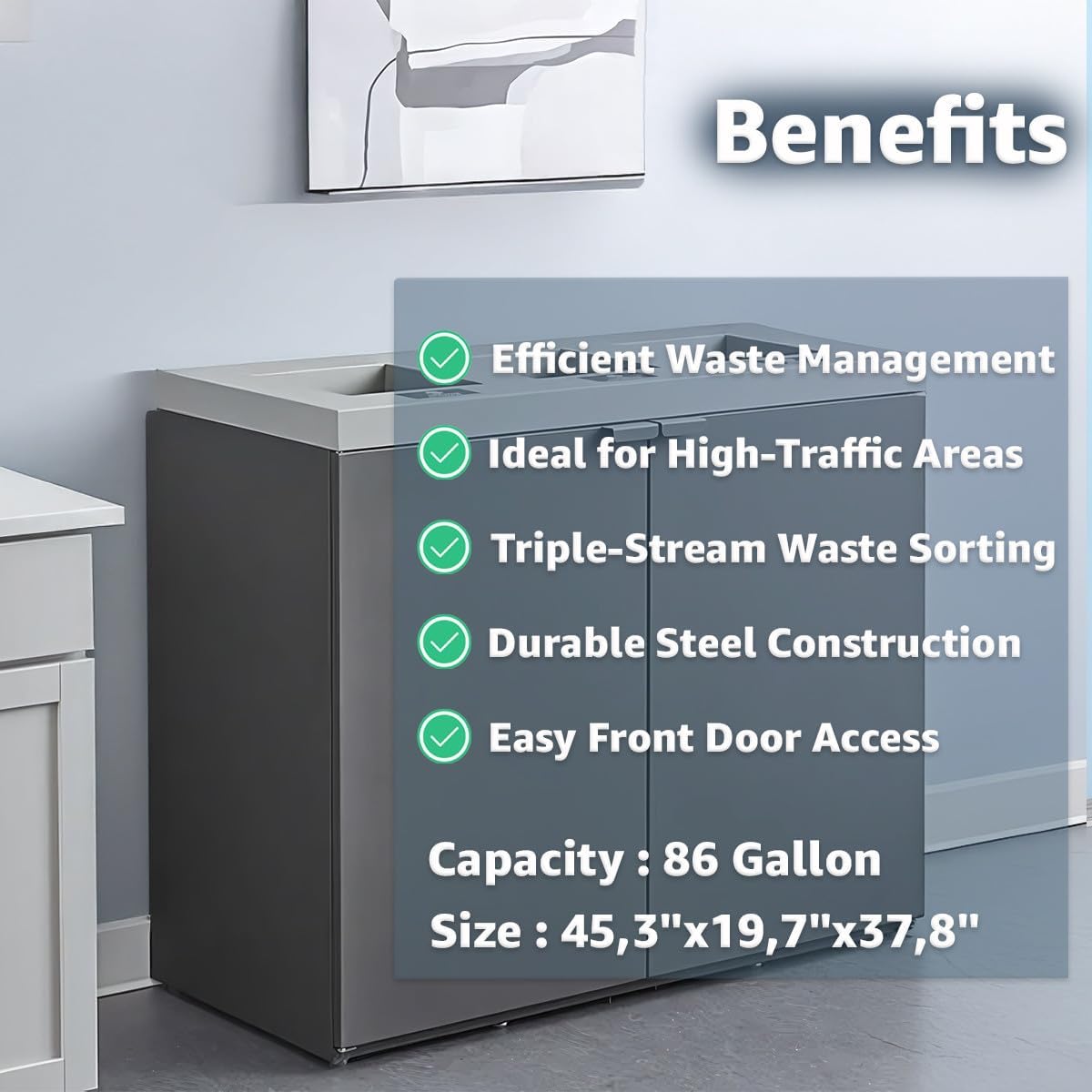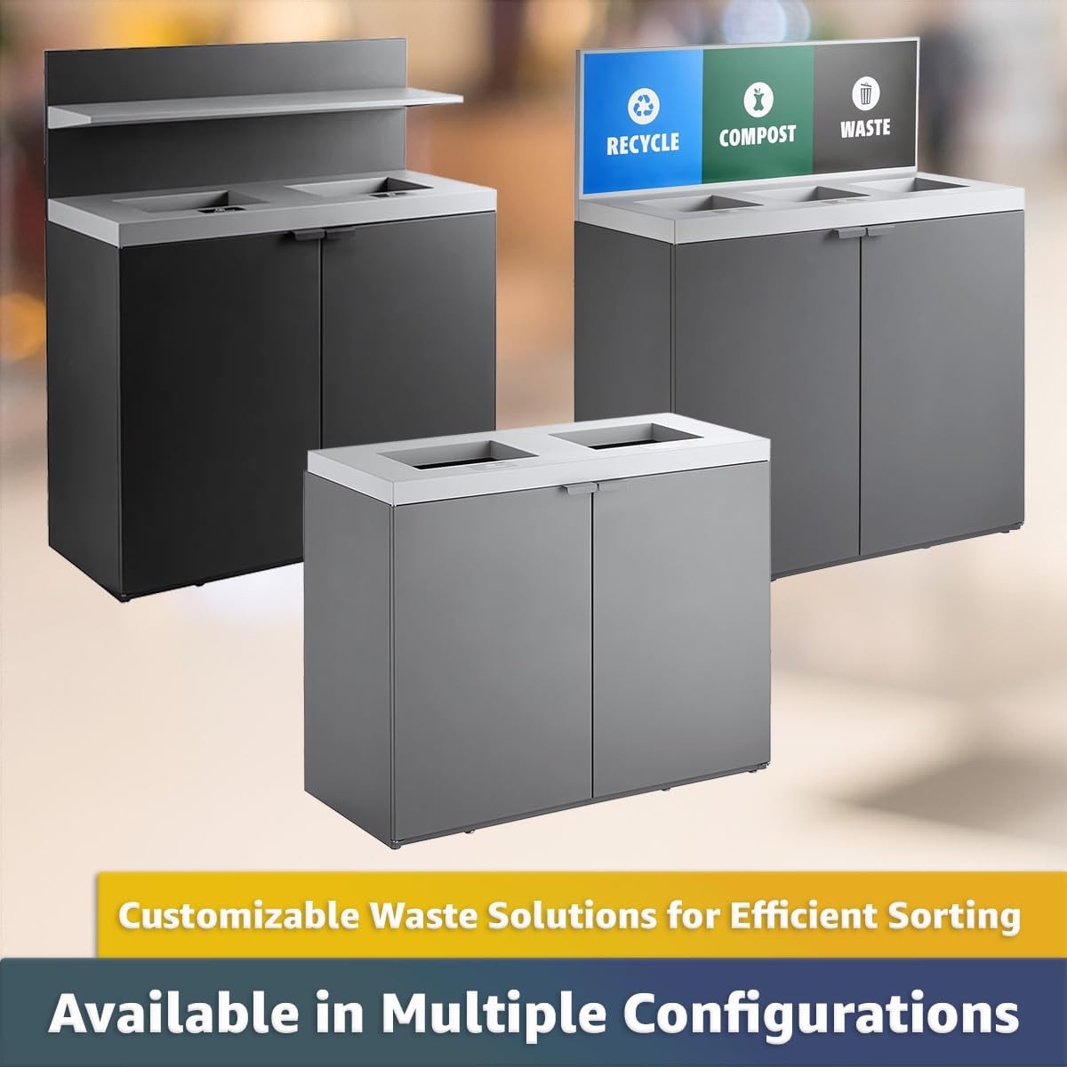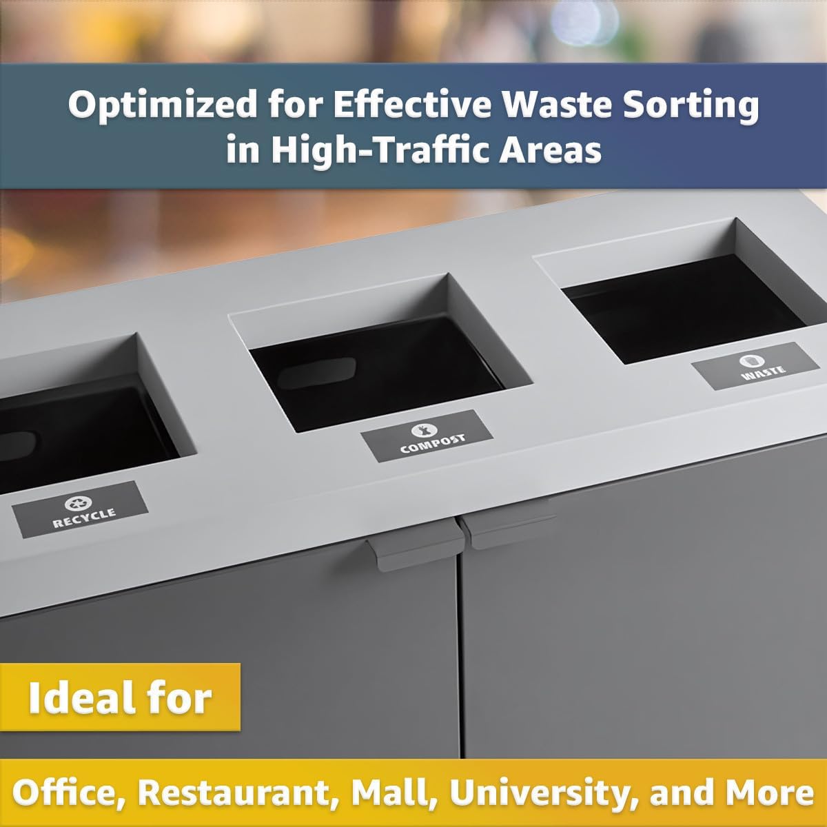 Perfect for Public Spaces With an 86-gallon capacity, this recycling center is ideal for busy locations like malls, offices, and event venues