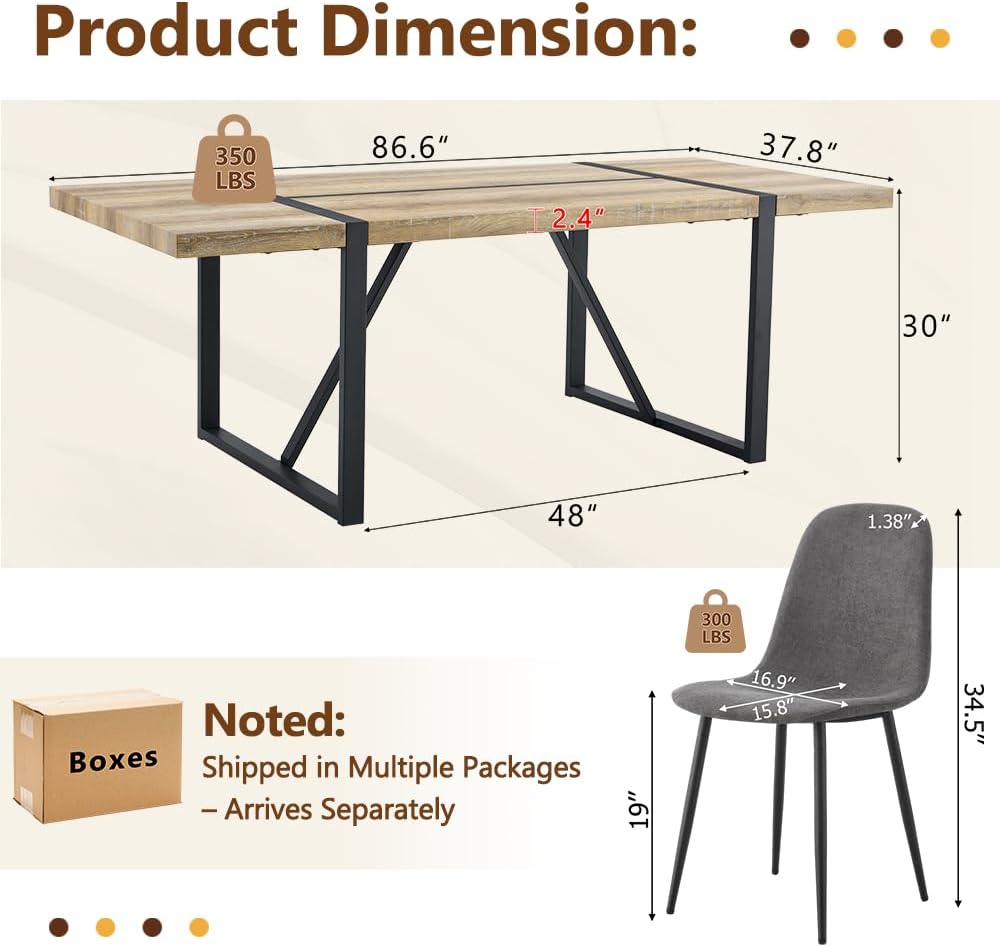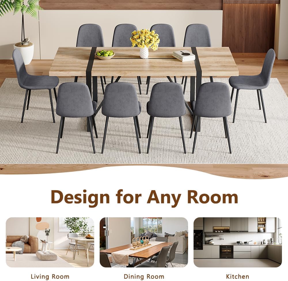 Spacious and Durable: Featuring an 86.6" x 37.8" x 30" tabletop, crafted from four 2.5" thick MDF boards, this dining table comfortably seats 8-12 people. The table is easy to clean, durable, and designed for daily use, making it perfect for family dinners and gatherings