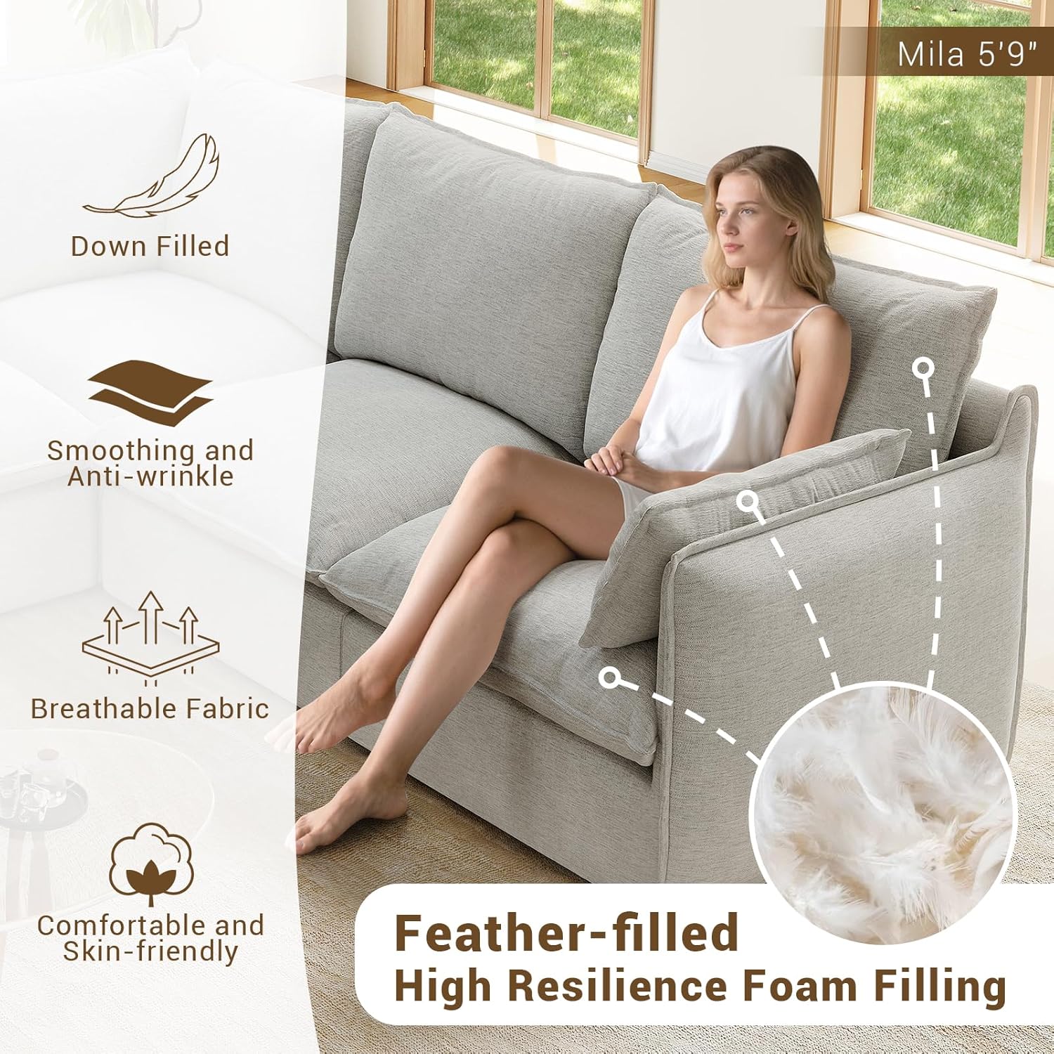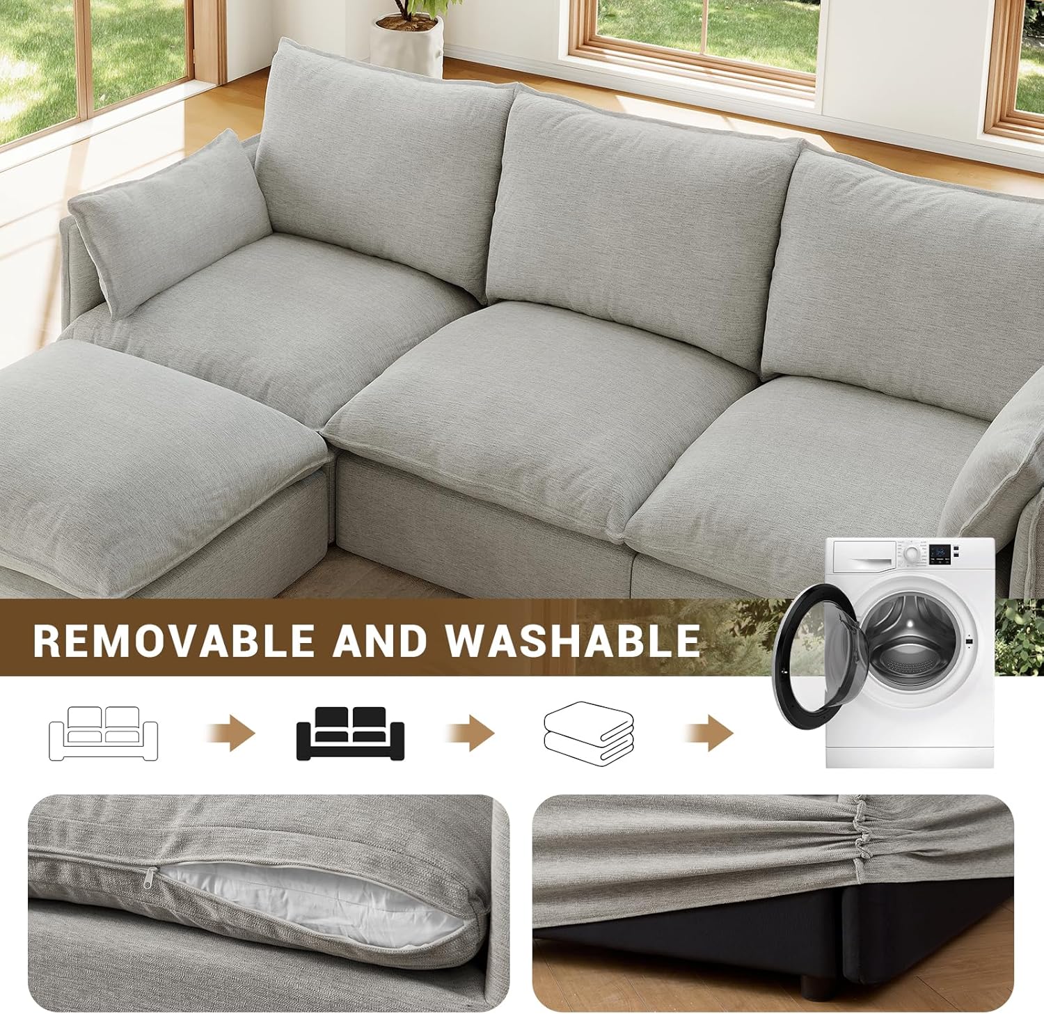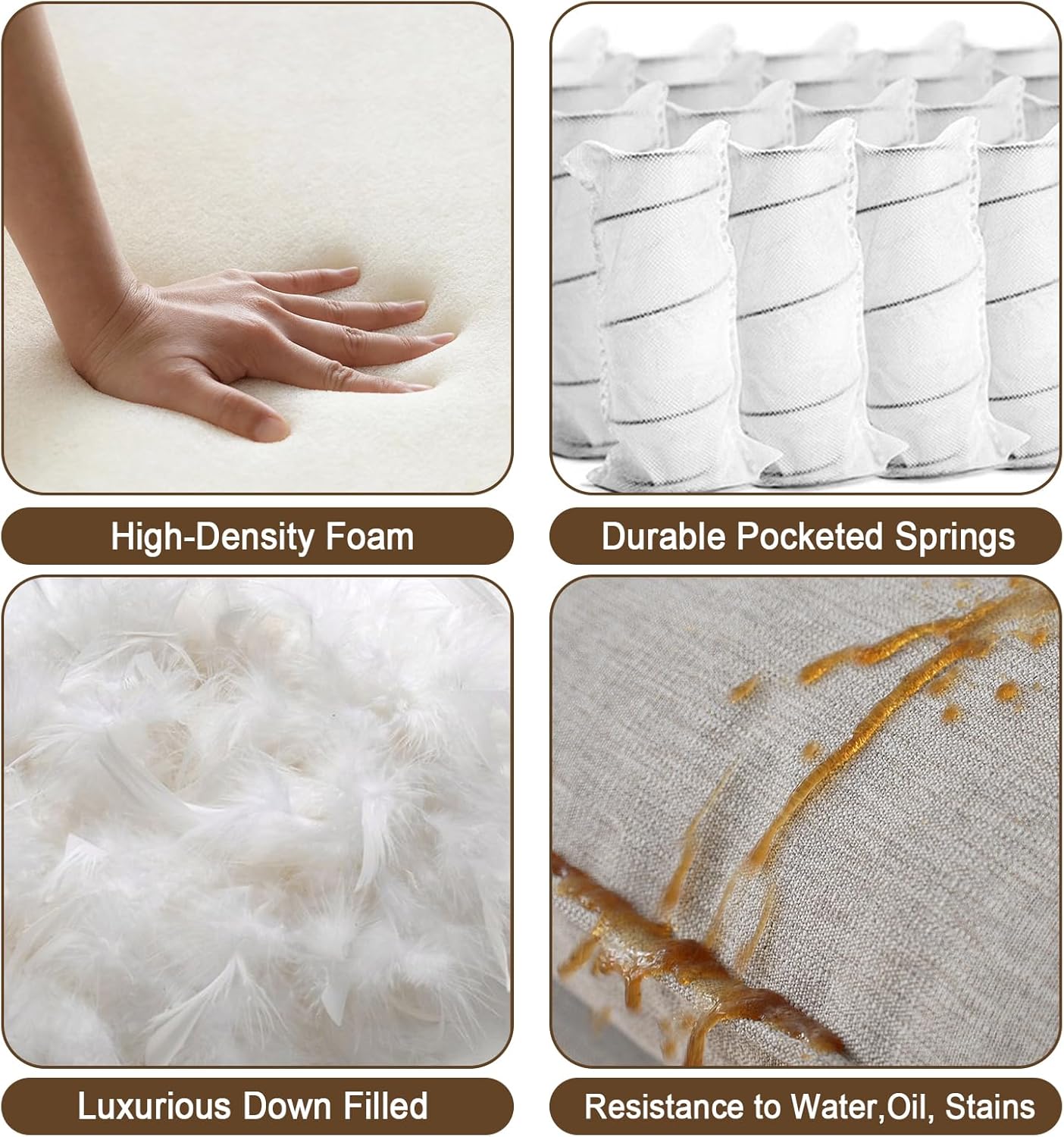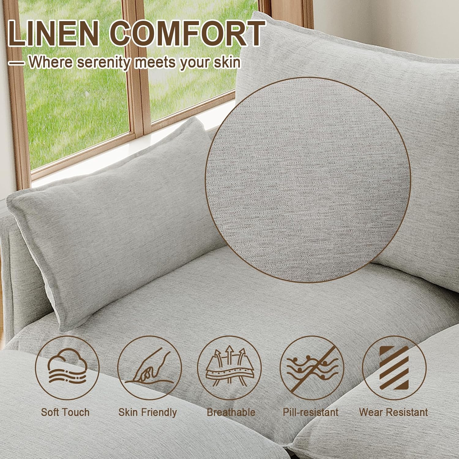 [Waterproof Sectional Couches] This sofa features a combination of natural linen fabric and innovative three-proof technology,offering waterproof, oil-proof,and stain-resistant properties that make cleaning simple and maintenance easy.It retains the high-end texture and natural feel of linen while providing excellent breathability and comfortable seating, making it ideal for families with young children and pets.