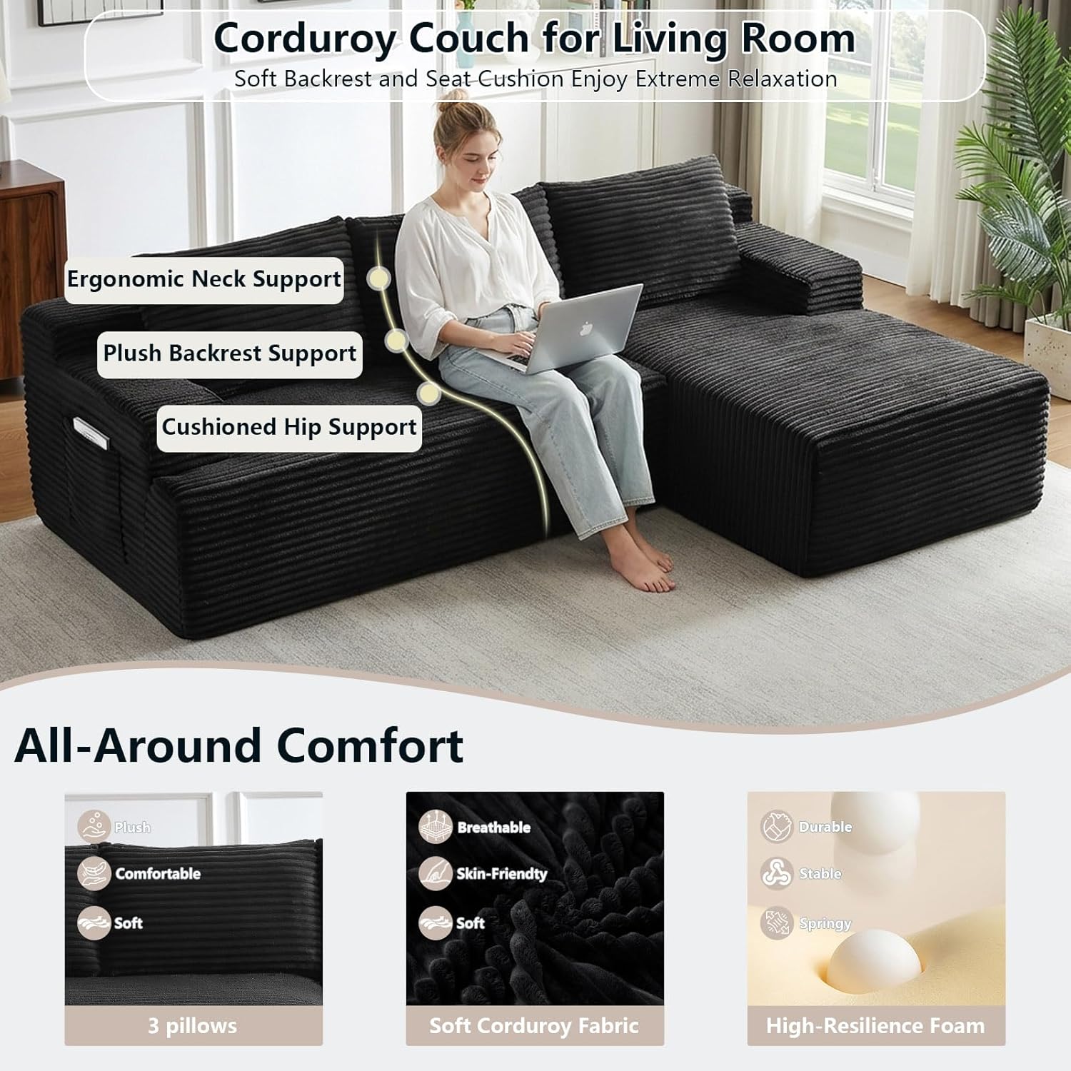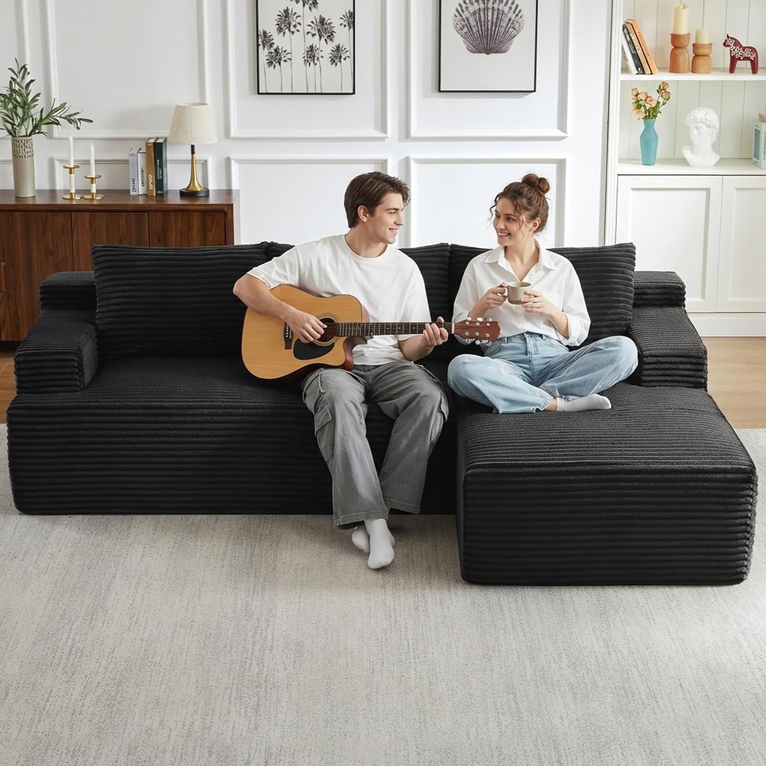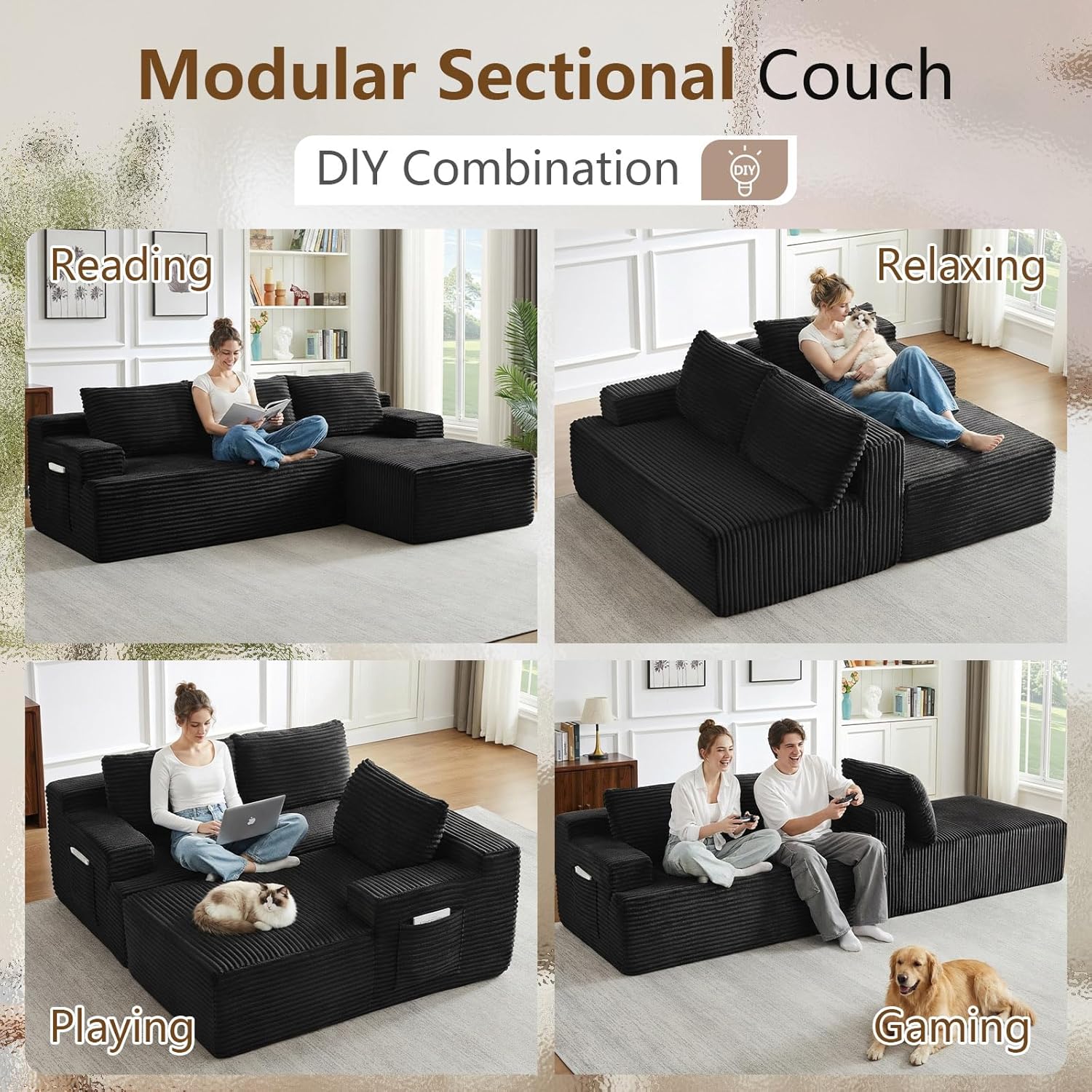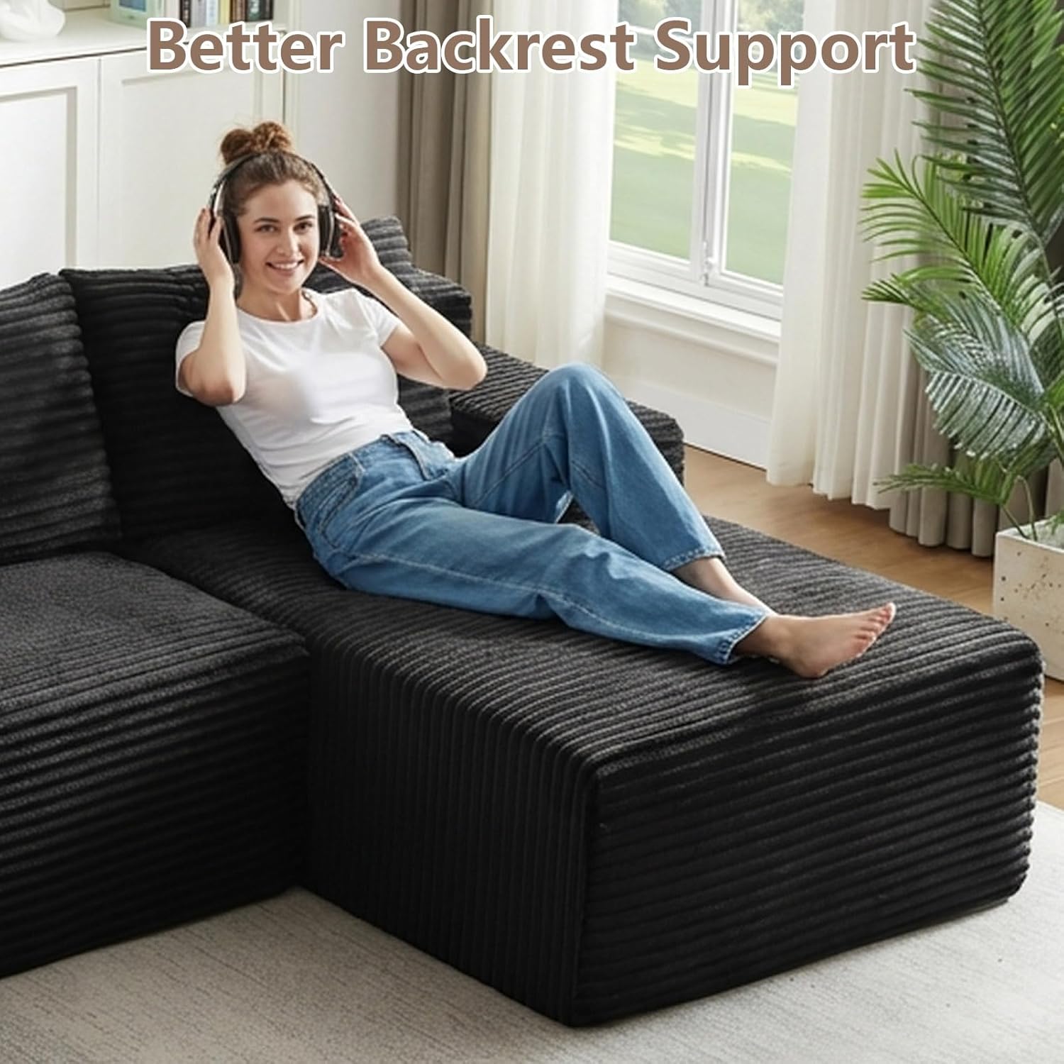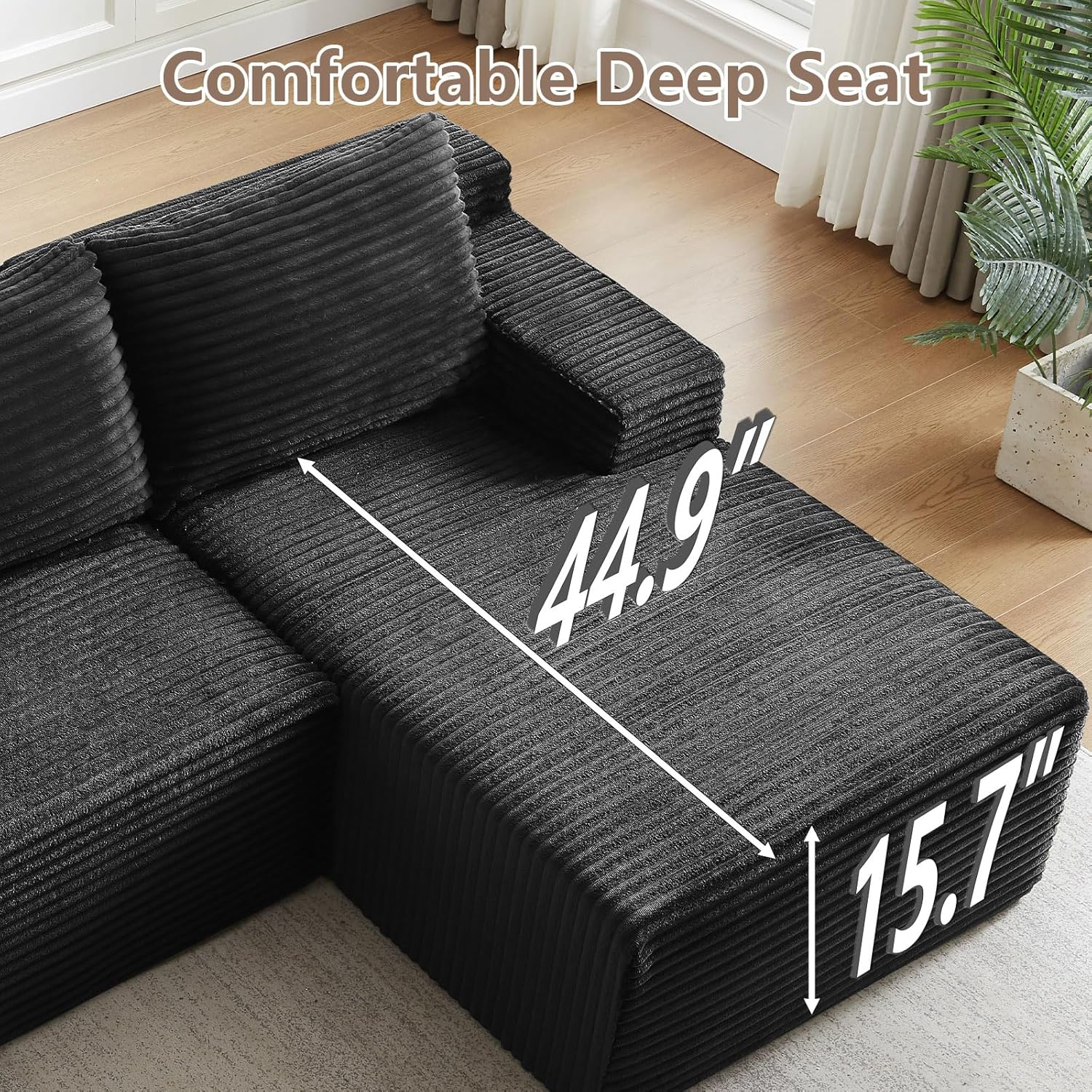No Assembly Required: Say goodbye to furniture assembly nightmares. Our modular cloud corner sofa arrives compressed in 2 boxes. Simply unbox all pieces, gently tap each section to restore its springiness, and poofit transforms back to photo-ready perfection, It might take up to 72 hours to fully revive