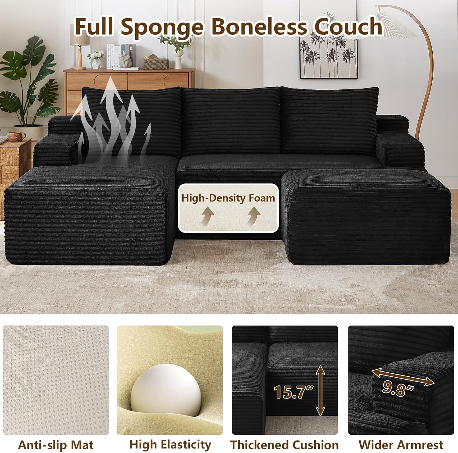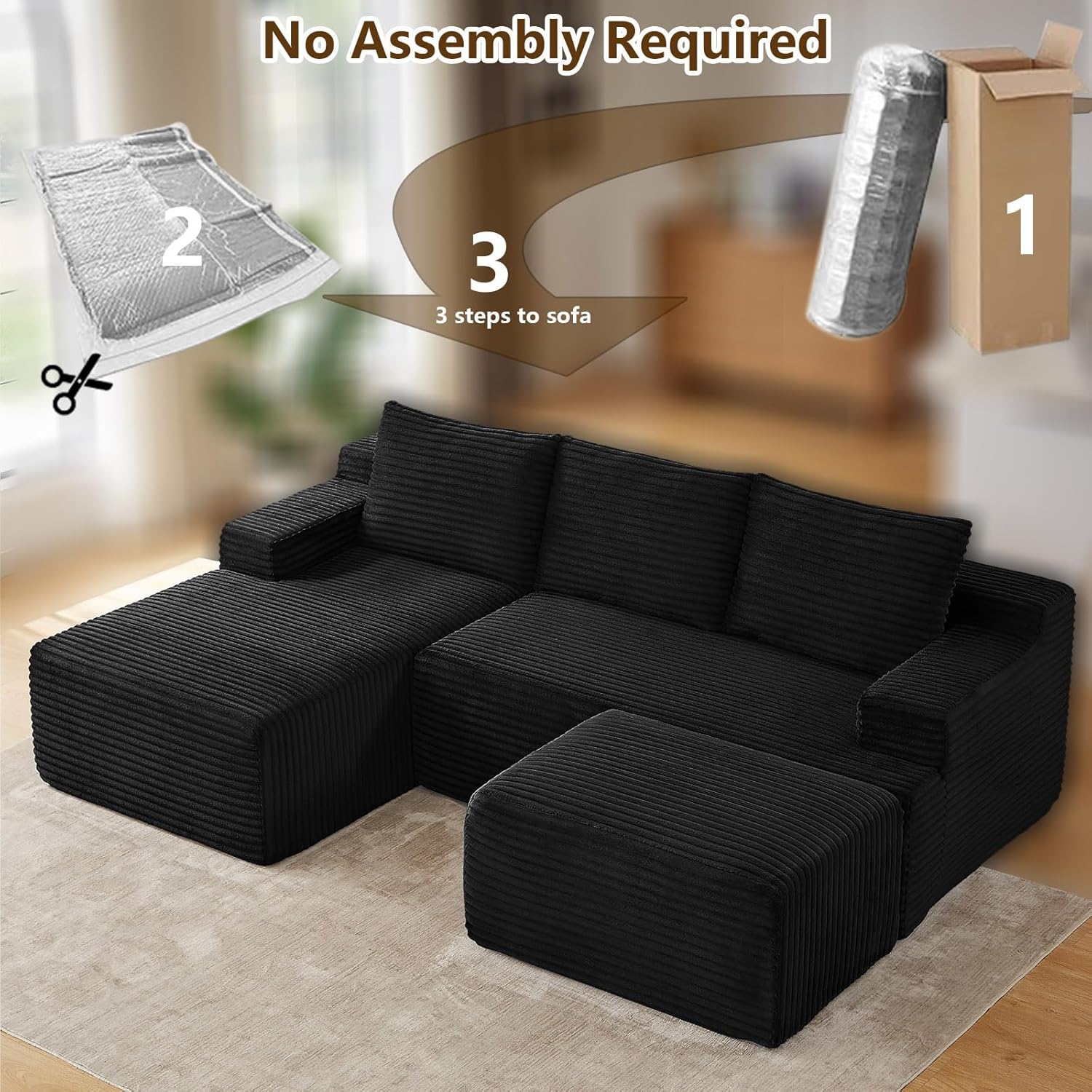 No Assembly Needed:Skip the frustrating furniture setup! Unbox all parts, lightly tap each segment to restore its springiness, and your "cloud lounge" is ready to use. It reaches full luxurious plumpness within 72 hours, saving you time and effort.
