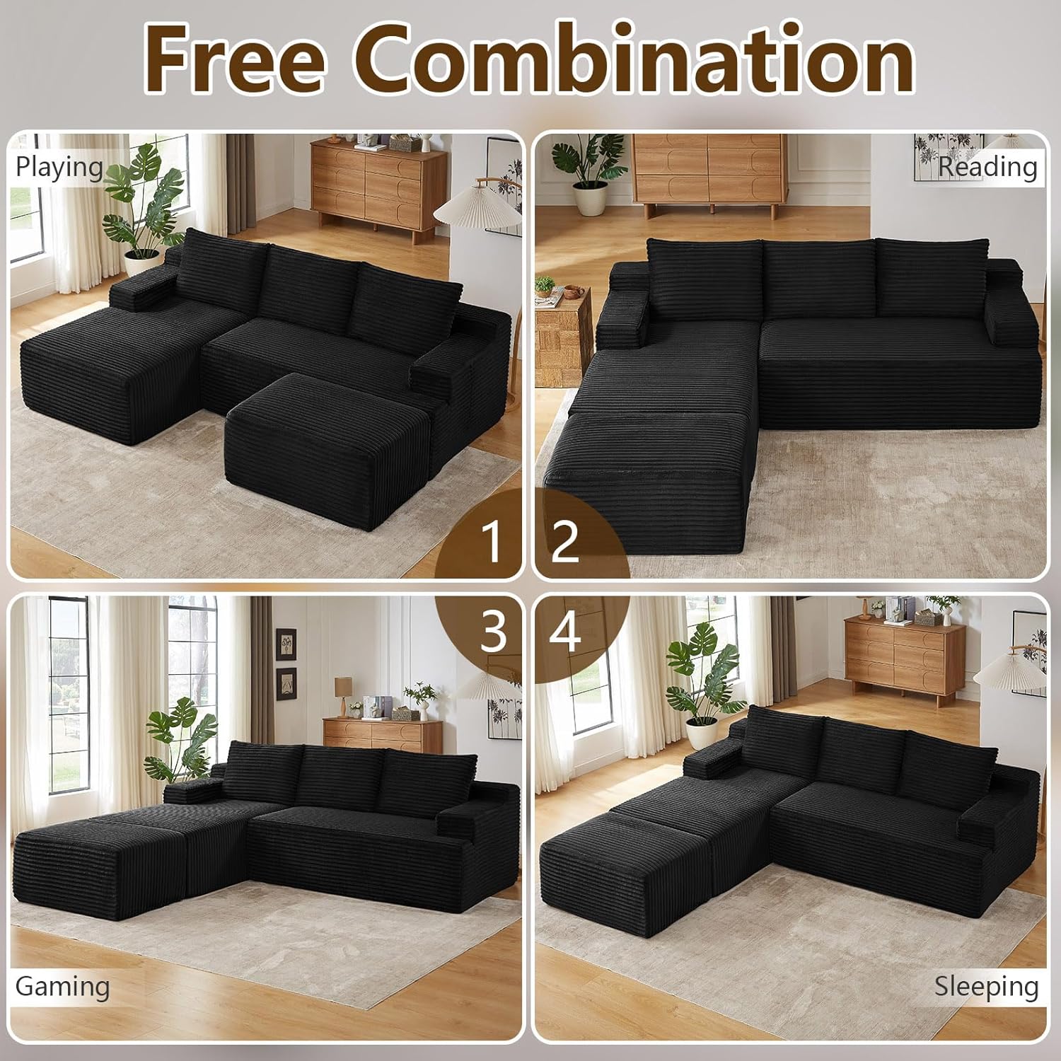 Versatile for Any Room:Perfect for living rooms, apartments, bedrooms, guest rooms, and kids play areas (safe for kids to play on!). Its modular design fits through narrow hallways and tight doorways, and each piece moves independentlyno more relocation worries. Maximize space and flexibility.