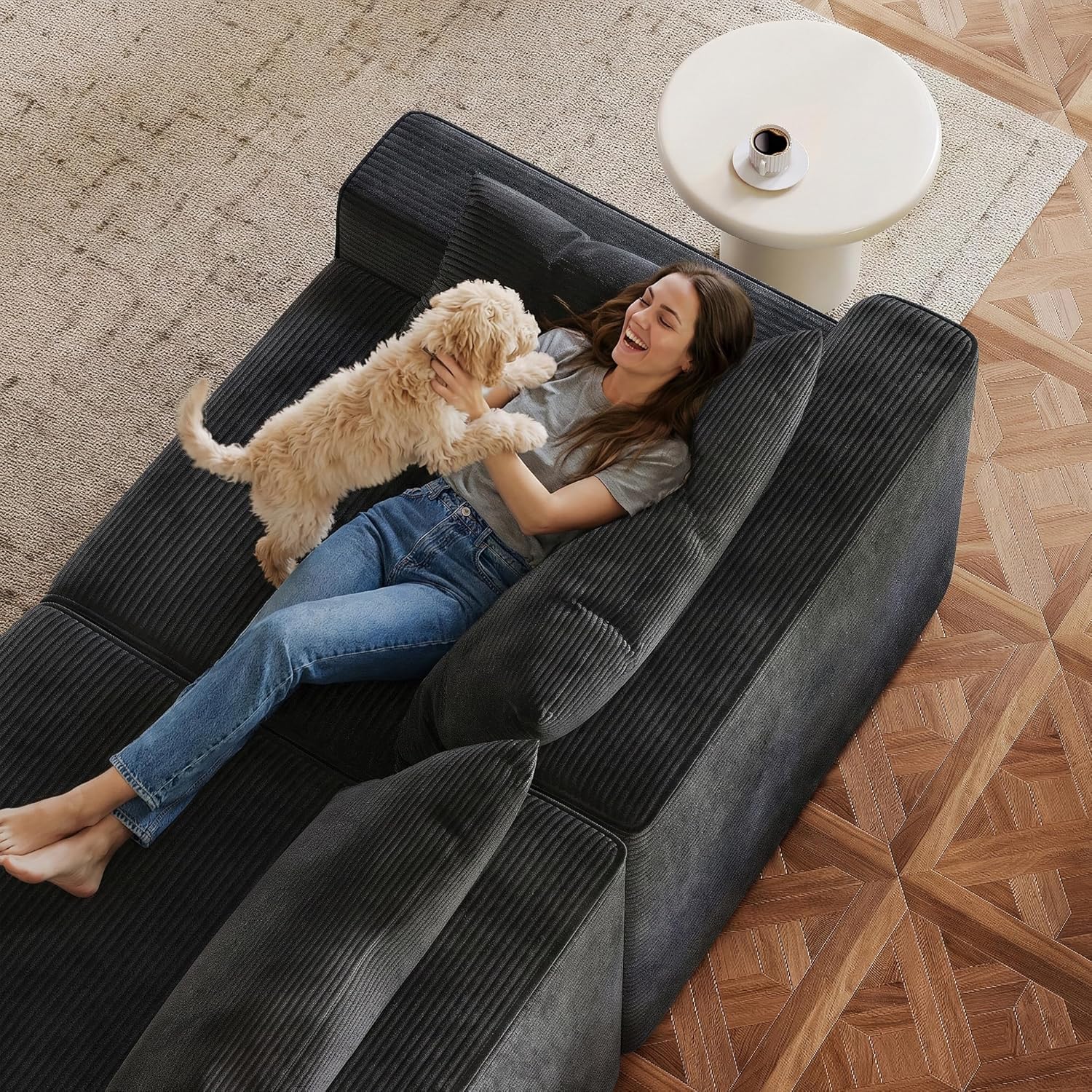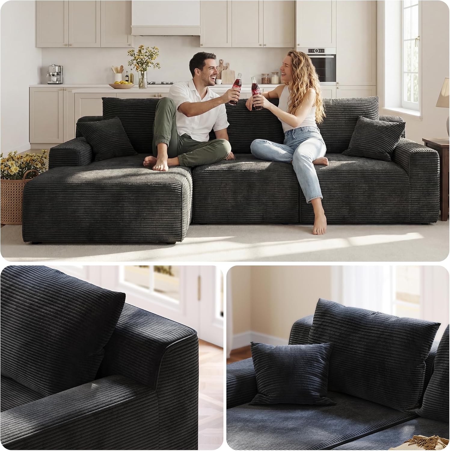 [Soft, Wrinkle-Resistant Fabric] Sectional sofas for living room is upholstered in premium soft corduroy fabric that withstands daily wear and tear and pet scratches, while its durable, high-quality material ensures lasting comfort year-round.