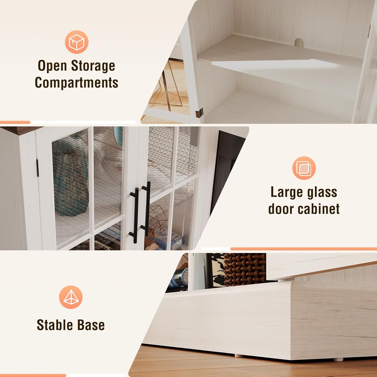 Sufficient Storage Space: Our entertainment center includes an open storage compartment for DVDs and two spacious glass-front cabinets, perfect for organizing media, games, and other essentials. With two adjustable shelves, you can customize the storage to fit your needs