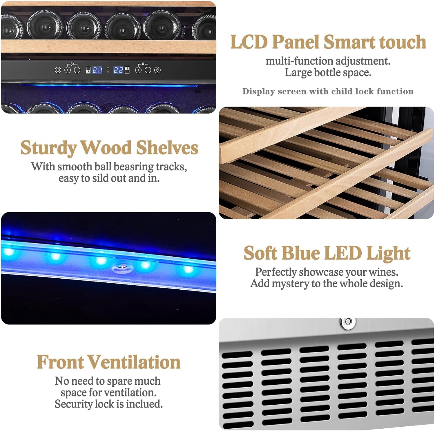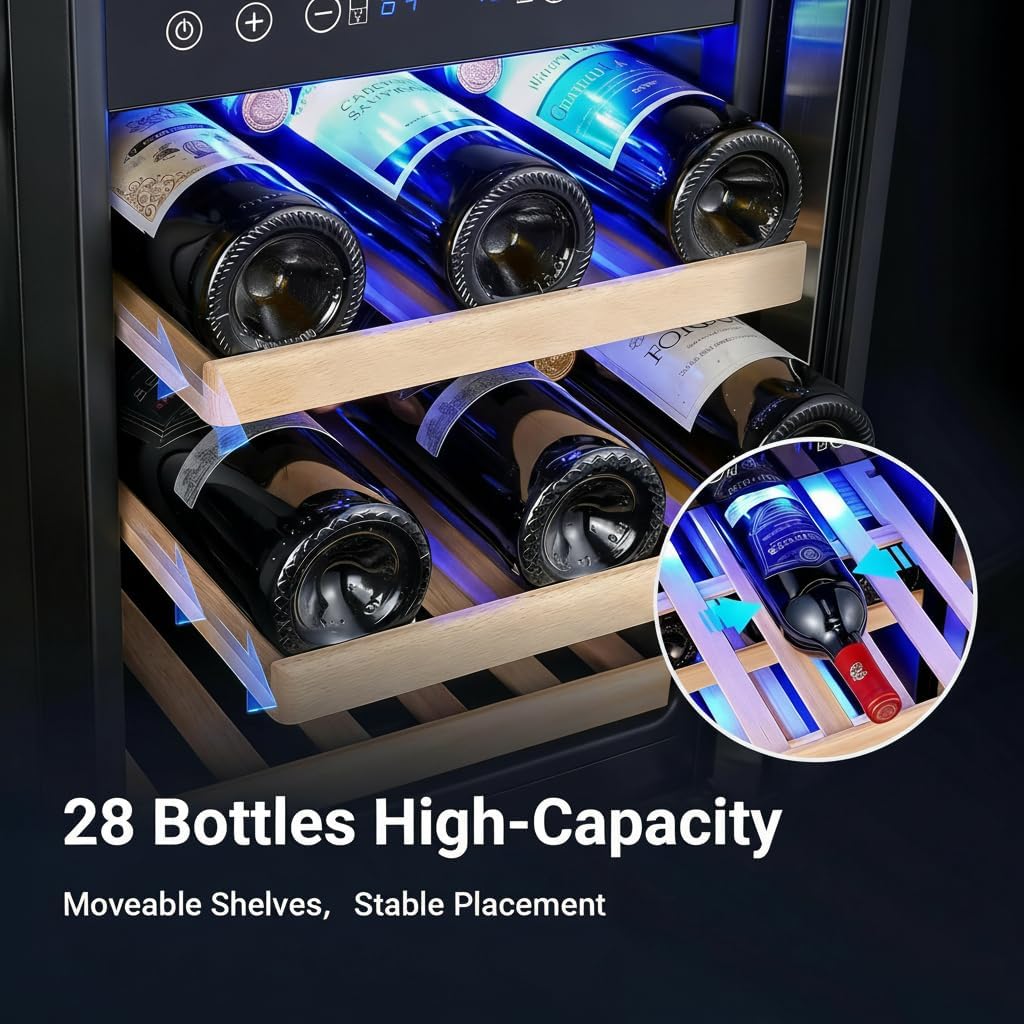 Intelligent Temperature Control Easily adjust the temperature range via the intuitive touchscreen on this 15-inch freestanding wine fridge. The temperature memory function automatically restores your settings after a power outage, ensuring your wines are always kept at the ideal temperature. This lockable wine cooler fridge makes a perfect birthday, Thanksgiving, or Christmas gift for your father, friends, or fellow wine enthusiasts.