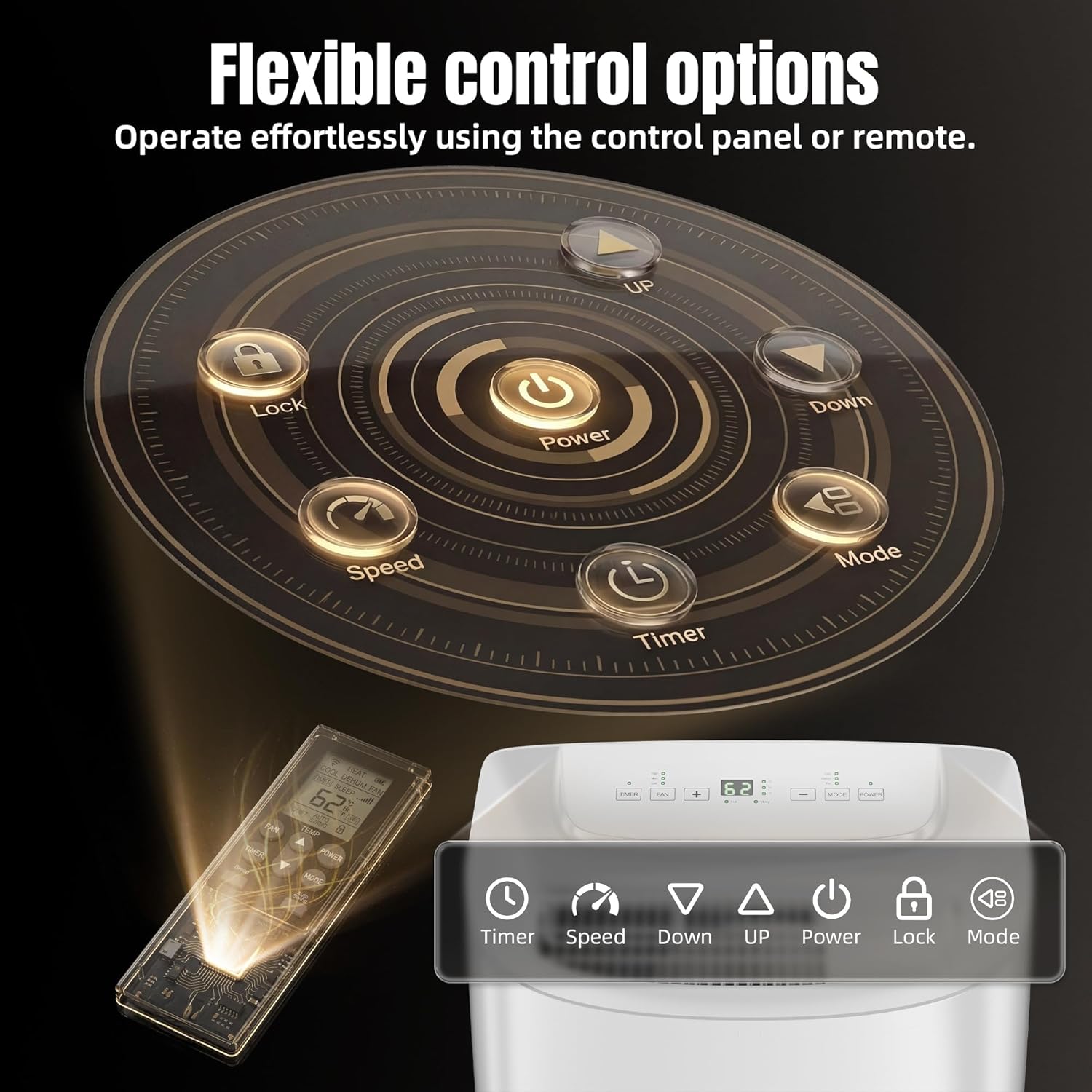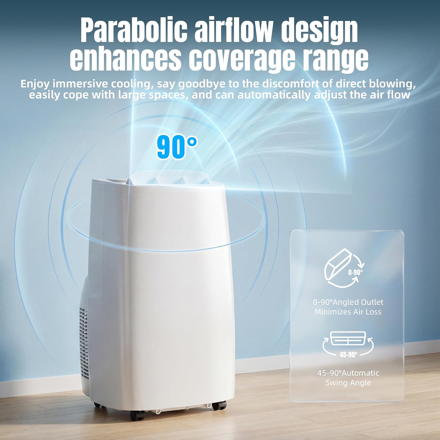 Advanced Control & Easy Mobility: Our floor-standing air conditioner features four 360 heavy-duty casters and an ergonomic recessed handle, allowing you to effortlessly move the unit to any room. The easy-to-read LED display and keypad, paired with a full-function remote control, enable you to adjust temperature and fan speed with easewhether sitting on the couch or lying in bedwithout needing to approach or stand up, maximizing the convenience of your portable air conditioner.