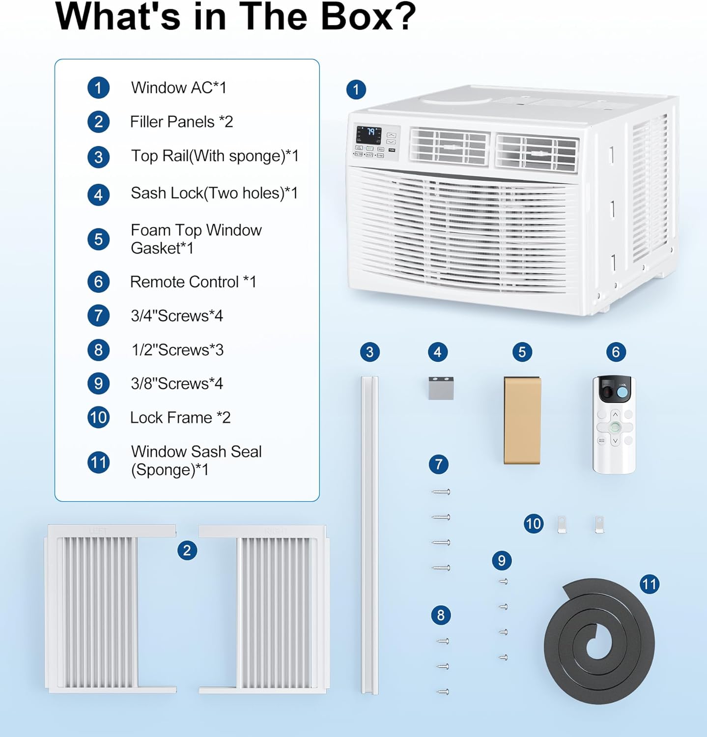 Simple Installation, Wide CompatibilityUnlike split-type air conditioners that require complicated installation, drilling, and external mounting, the window air conditioner can be easily installed and removed with the help of just two people. Compatible with 2336" wide single/double-hung windows. Requires only 14.5" vertical clearance for the lower sash, and full setup takes under 30 minutesno tools or complex adjustments needed