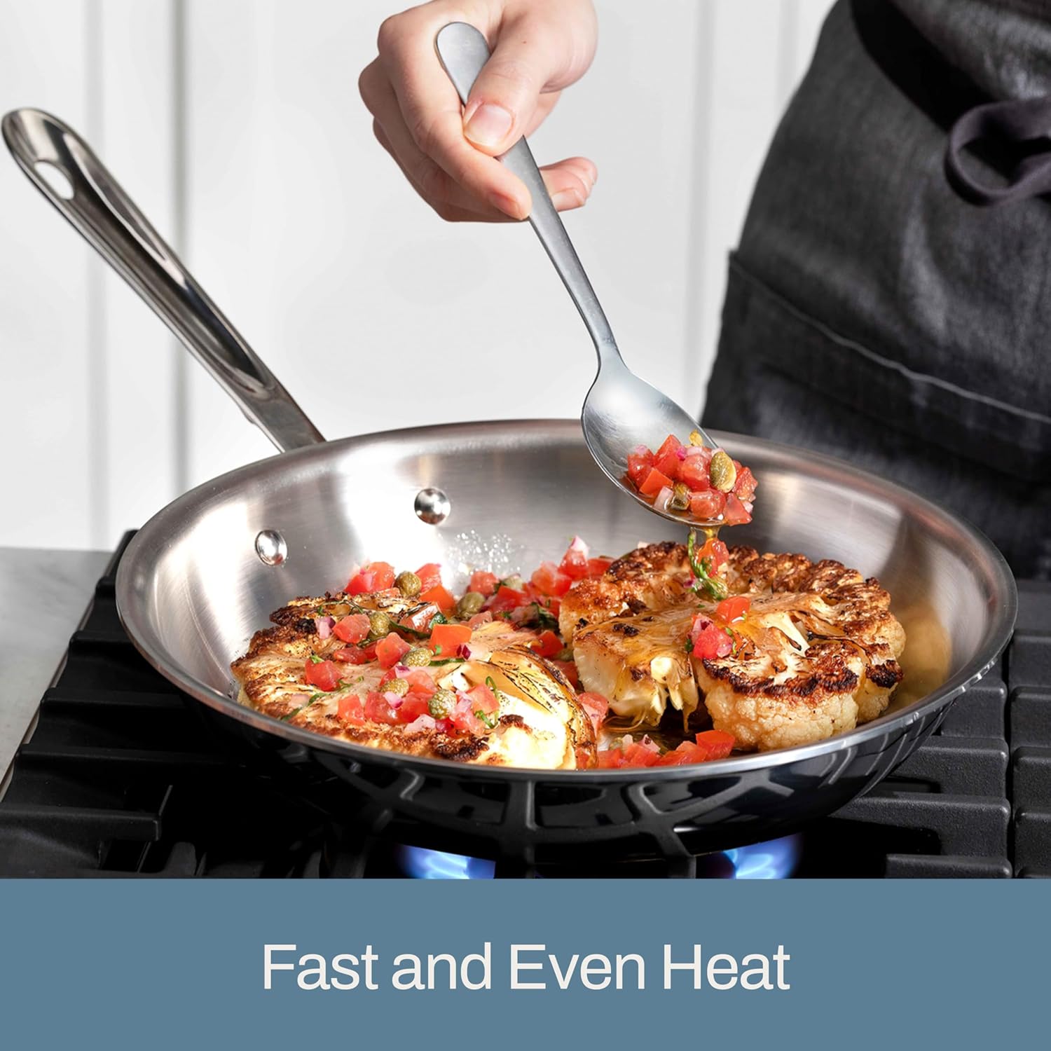 D3 Stainless is the original fully bonded tri-ply cookware trusted by chefs. The aluminum core delivers fast, even heat, while the high-quality stainless steel surface sears beautifully for professional results and long-lasting durability