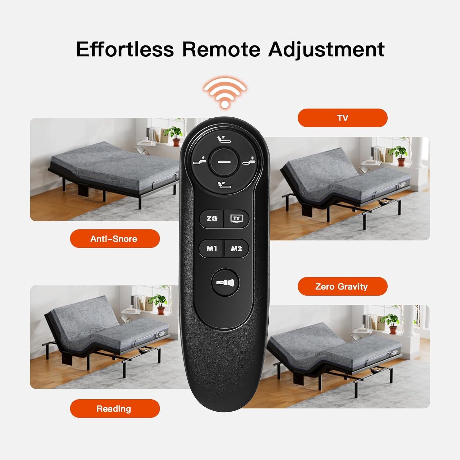 Smart Remote with Presets & Extras: The backlit remote features one-touch Anti-Snore, Zero Gravity, and Flat presets, plus two memory slots for favorite positions. Also controls under-bed LED lights and built-in USB-A & USB-C charging ports for convenience.