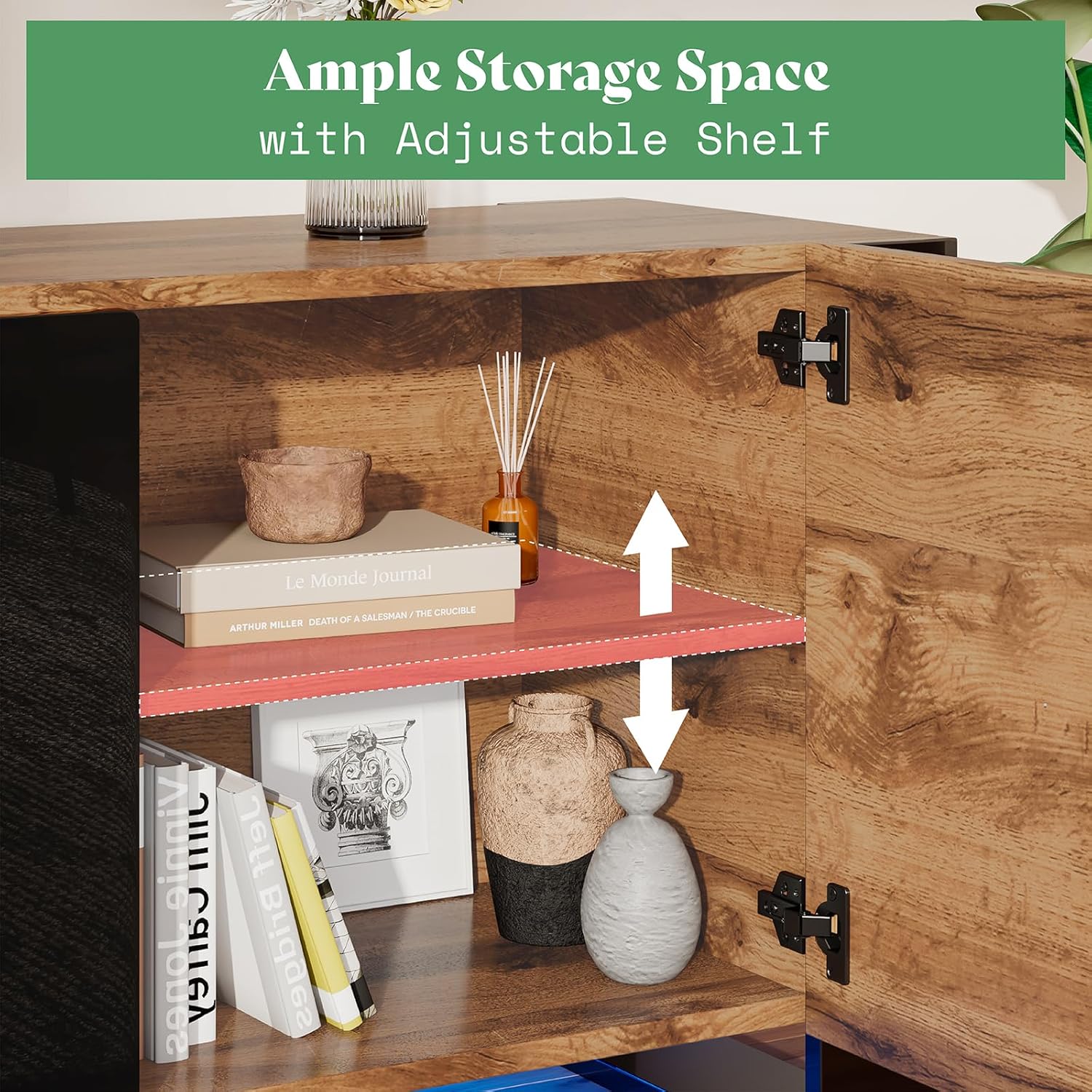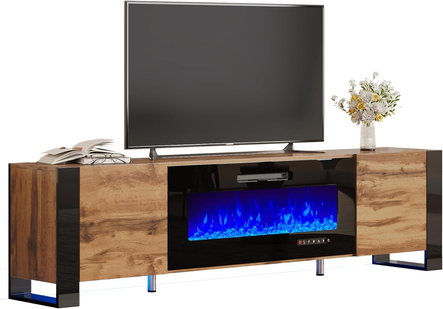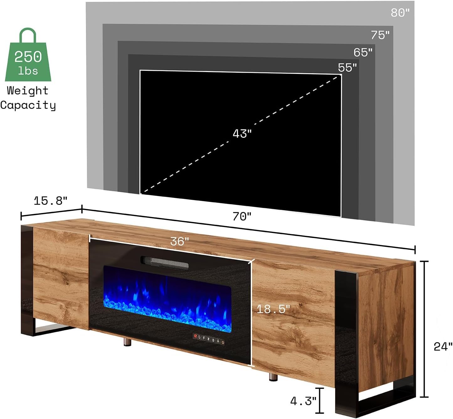 Flexible & Adjustable: Two control systems: remote control & touchscreen, temperature control and time setting are all for convenient use. TV cabinet has 2 enclosed storage space with adjustable shelves to adapt different height needs.