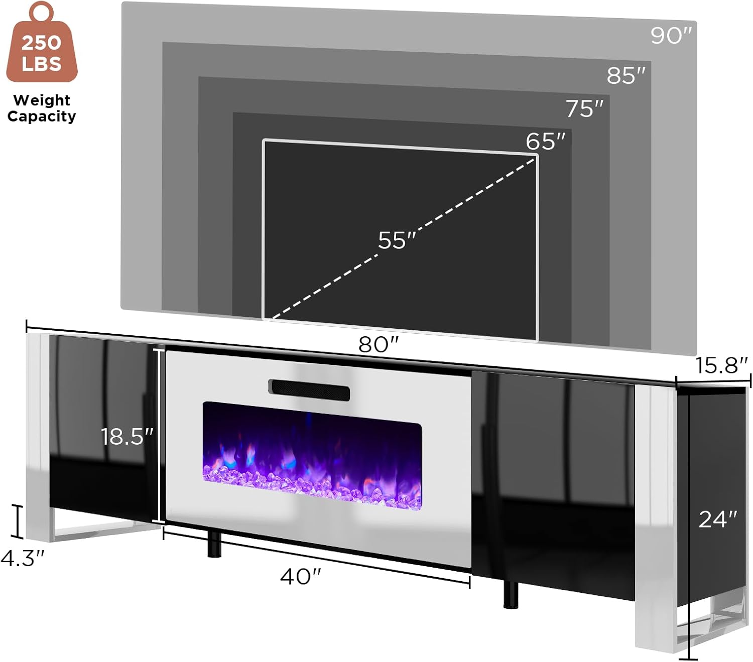 40 inch fireplace comes with realistic crystal stones and offers 8 flame colors & 5 brightness levels. It can quickly heat up to keep you warm, and also be used without heating as a nice piece of home decor