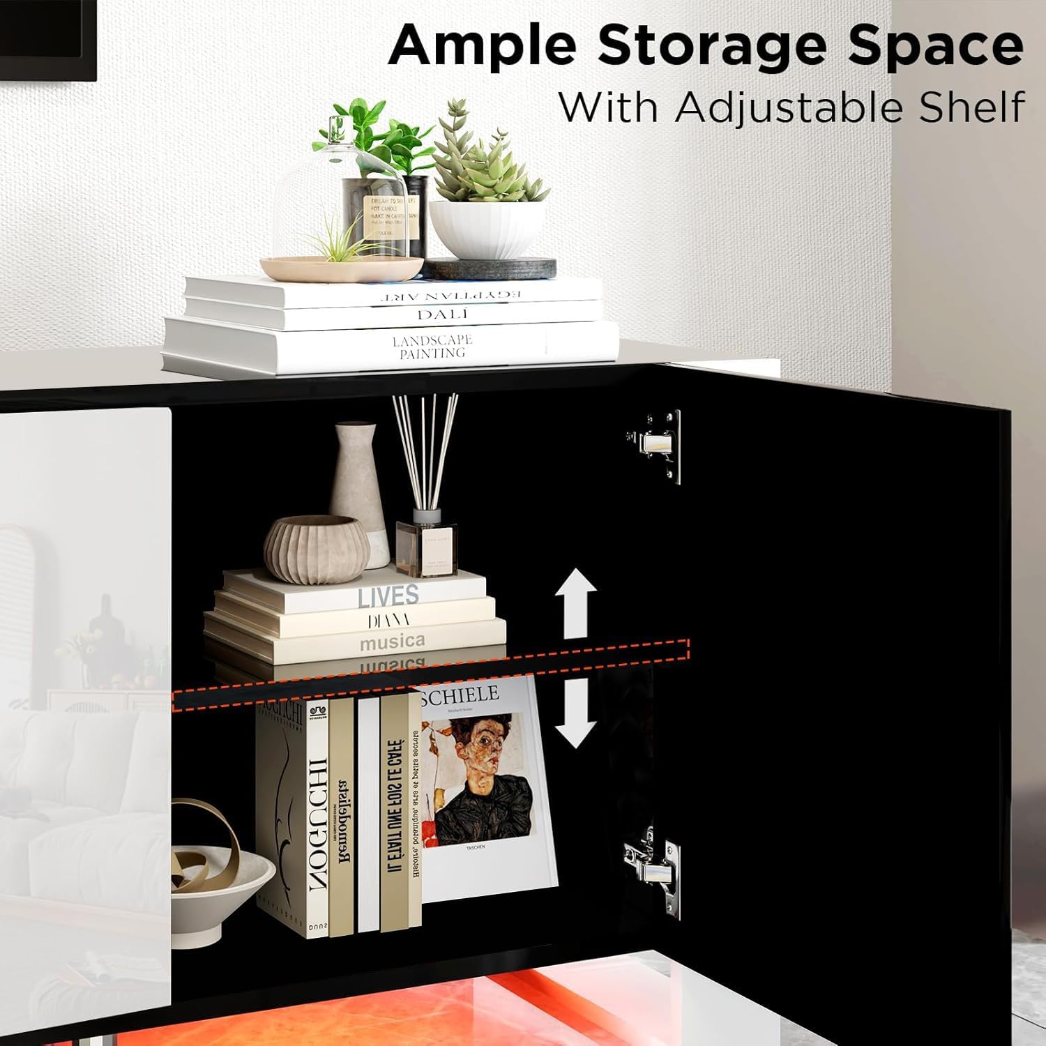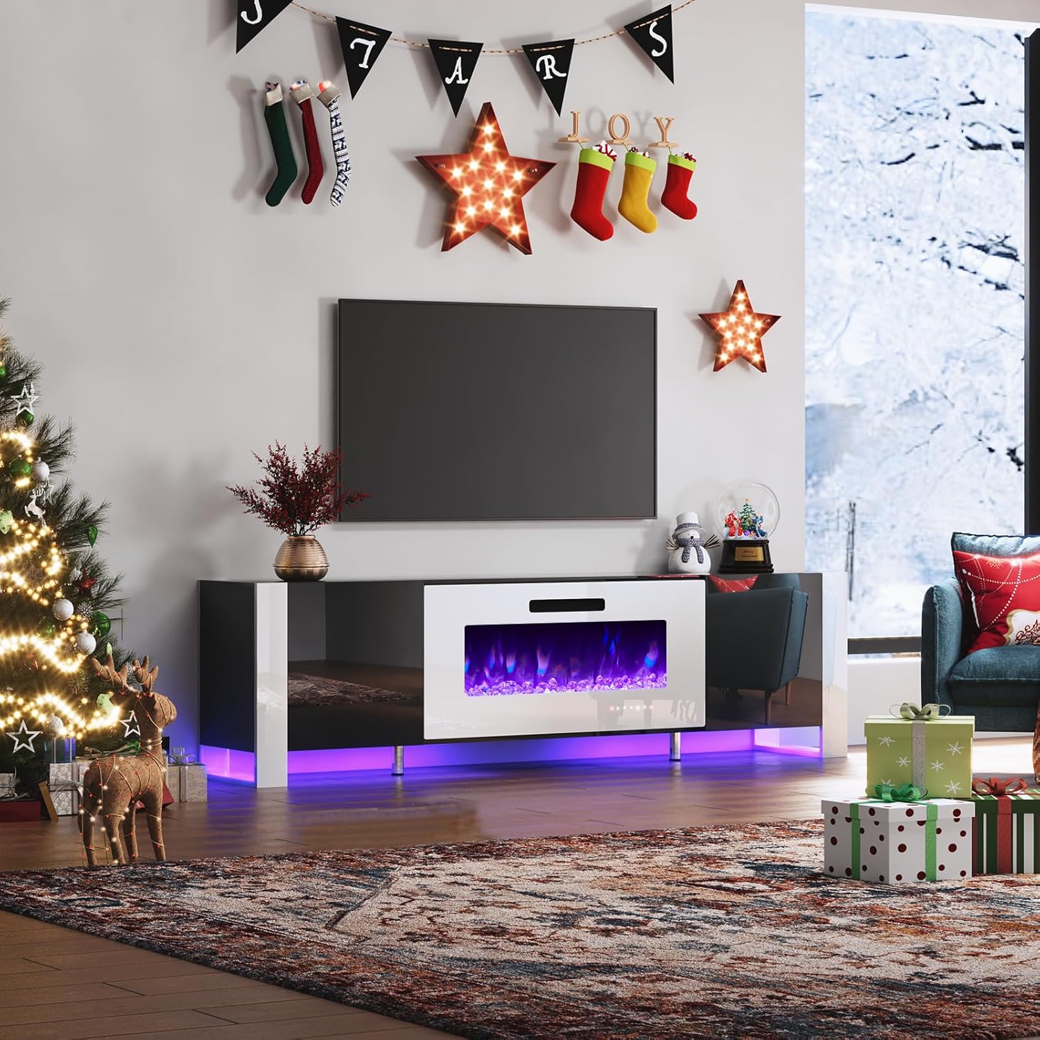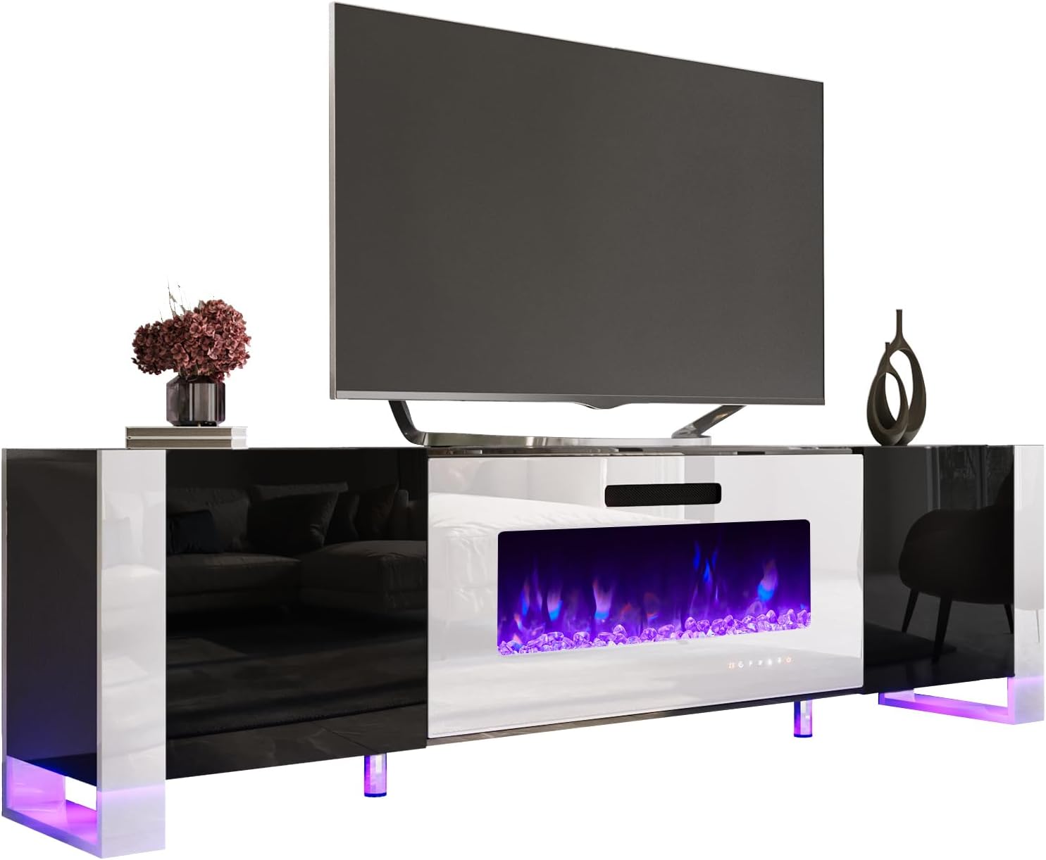 Flexible & Adjustable: Two control systems: remote control & touchscreen, temperature control and time setting are all for convenient use. TV cabinet has 2 enclosed storage space with adjustable shelves to adapt different height needs