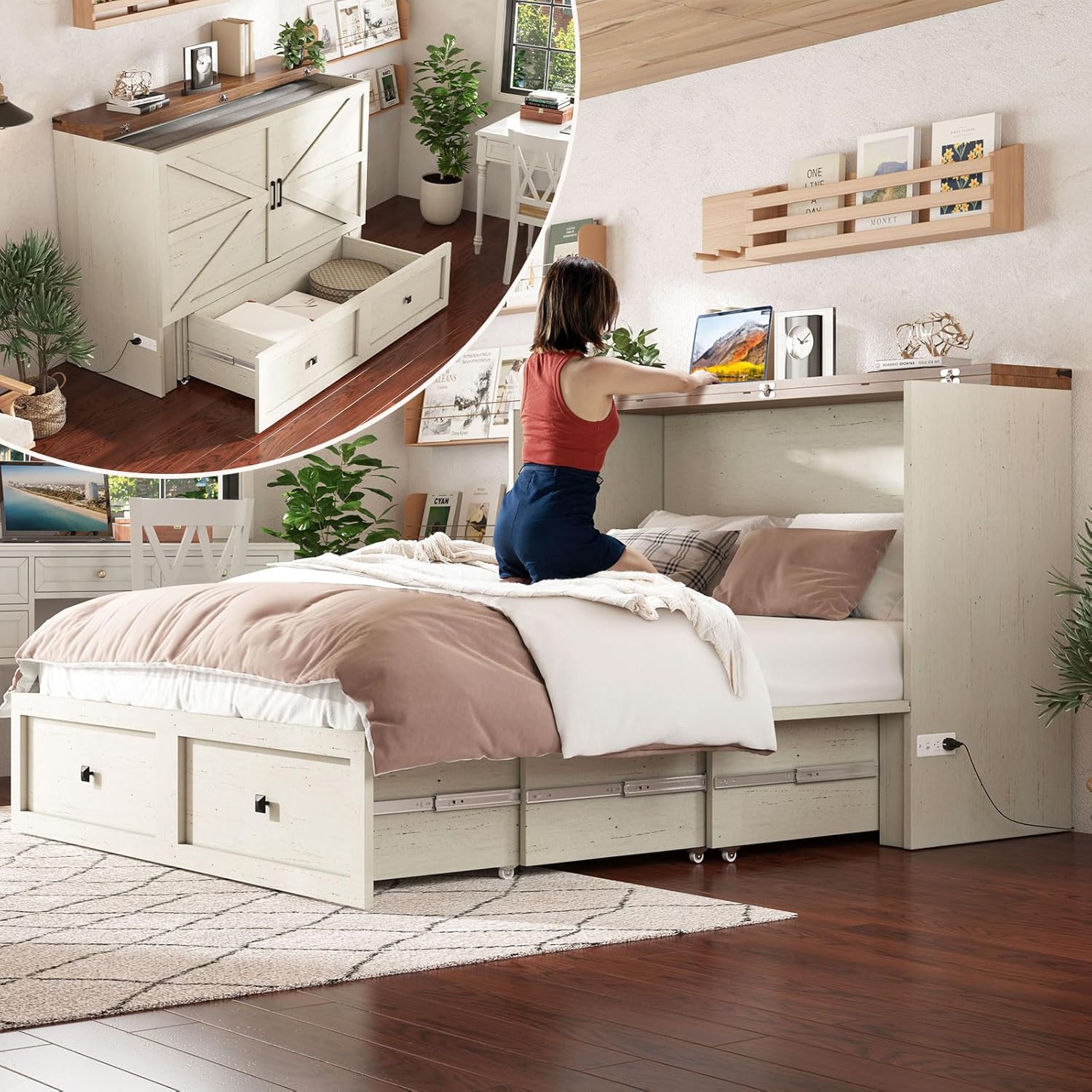 Practical Storage & ChargingDesktop offers space for decor or workspace, while built-in storage keeps your mattress. The integrated charging station keeps devices powered, and the drawer provides extra storage for pillows