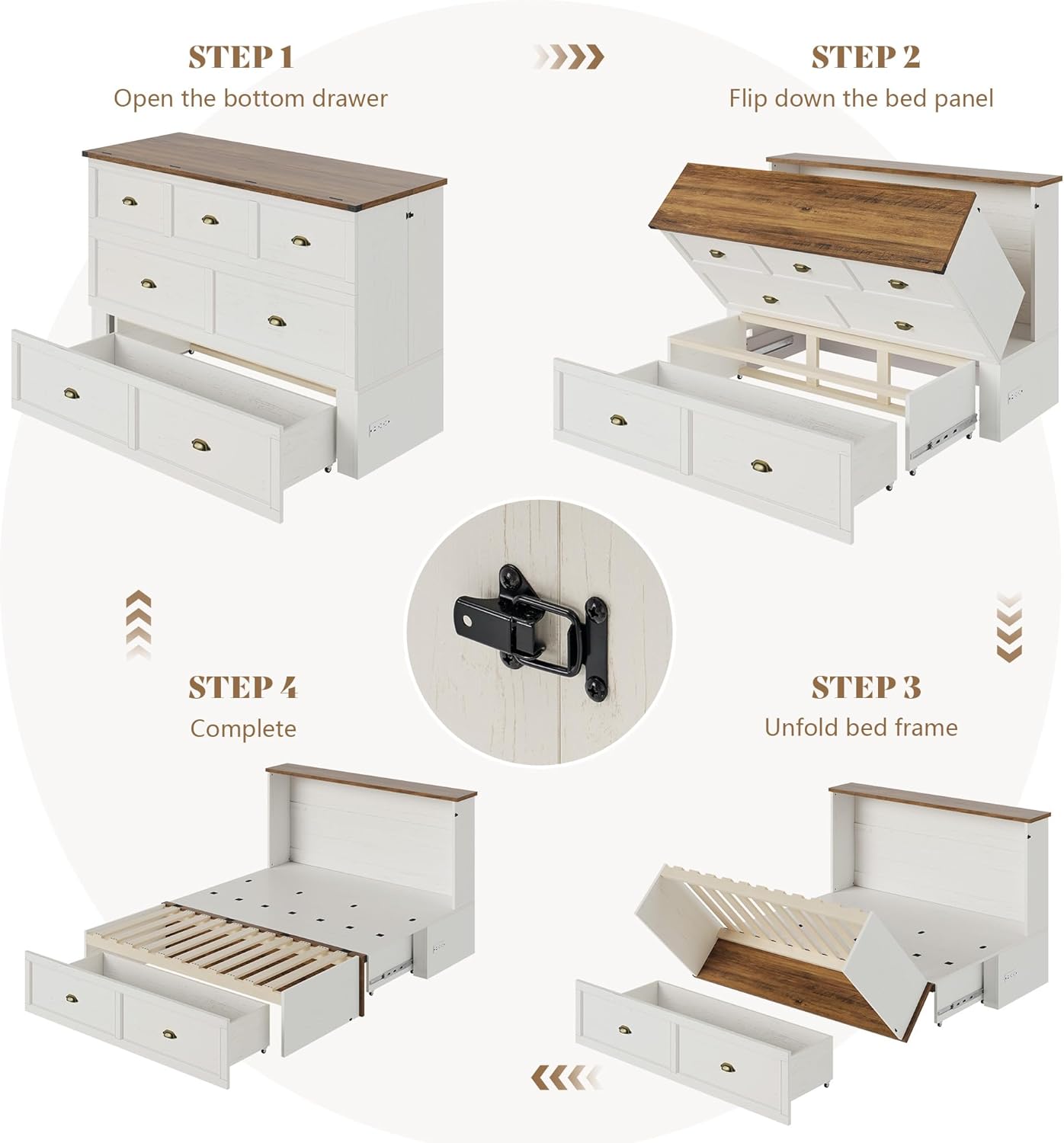 Optimized AssemblyInstallation process and cabinet structure have been optimized for simplicity and efficiency. Two adults can assemble this farmhouse Murphy bed in around 2 hours by following the step-by-step instructions