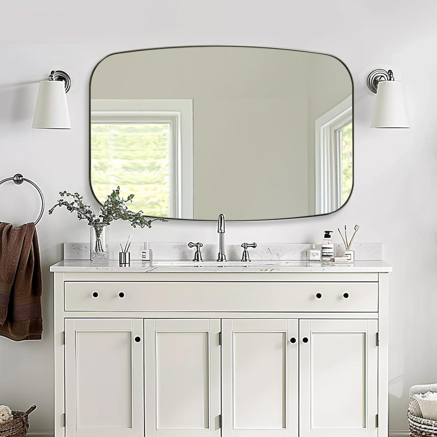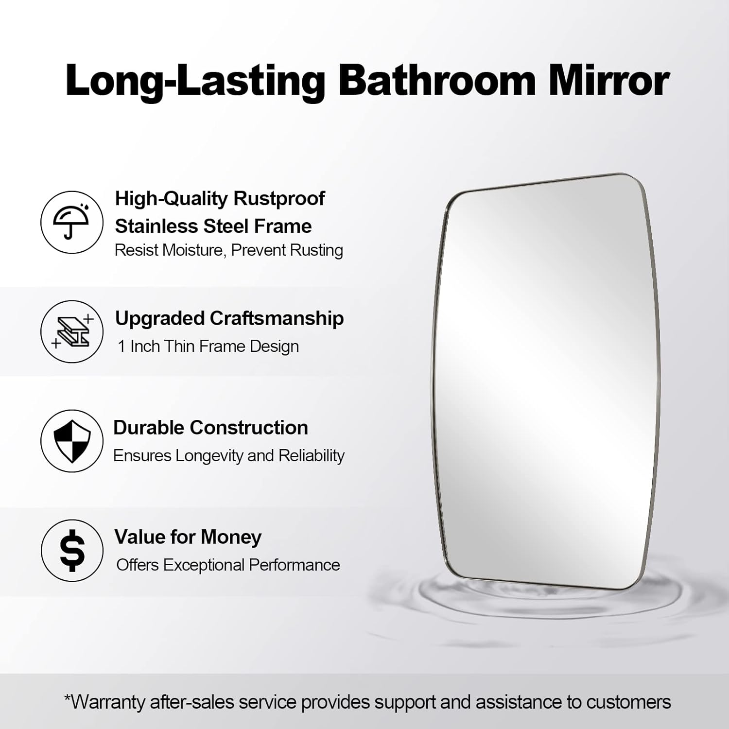 True Reflection: This vanity bathroom mirror features a 4mm HD glass surface, delivering flawless, distortion-free reflections. Its scratch-resistant and shatterproof design ensures durability, while the easy-to-clean surface maintains a perfect shine with minimal effort
