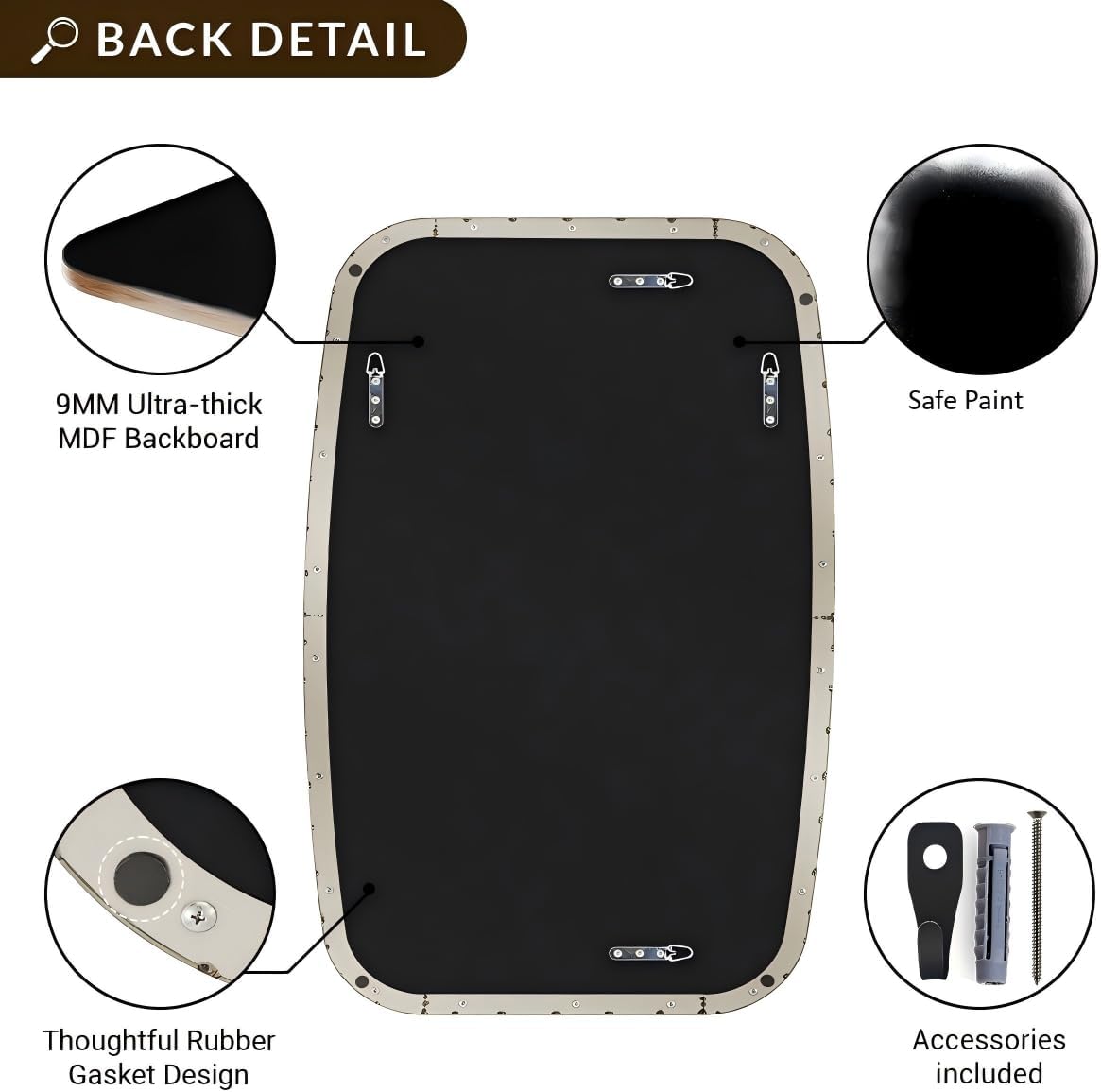 Premium Quality: Crafted from heavy-duty SUS304 stainless steel, this oval mirror is sturdy, durable, anti-scratch, and rustproof; The no-distortion HD glass provides clear reflections; the MDF backboard ensures safety and strength against humidity