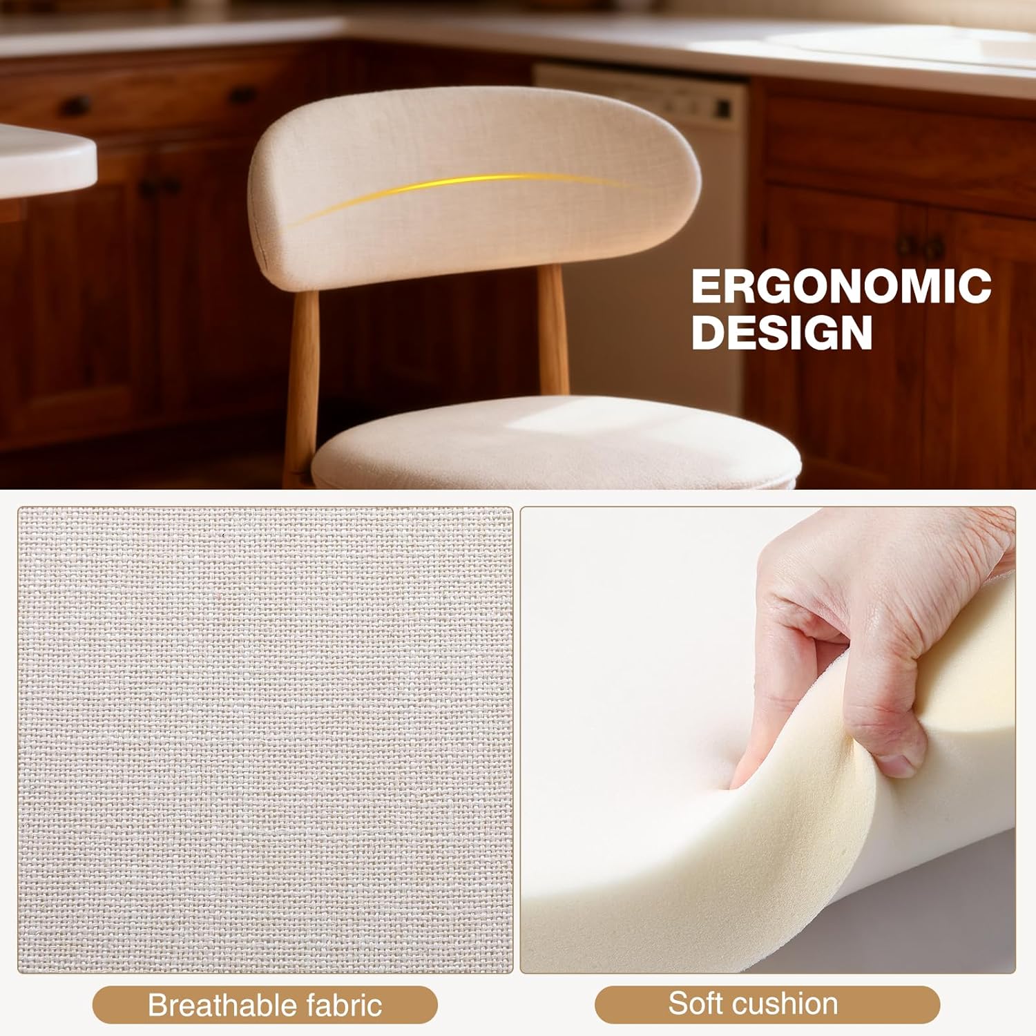 Multi-scenario applicability:Crafted from high-quality linen fabric that resists fading, these counter height chairs blend practical aesthetics into kitchen design. Their slim profile saves space, making them ideal for compact kitchens and island corners. With a 26-inch seat height and sturdy metal frame, they provide reliable support at islands, bars, or high tableseffortlessly creating a stylish and efficient dining area