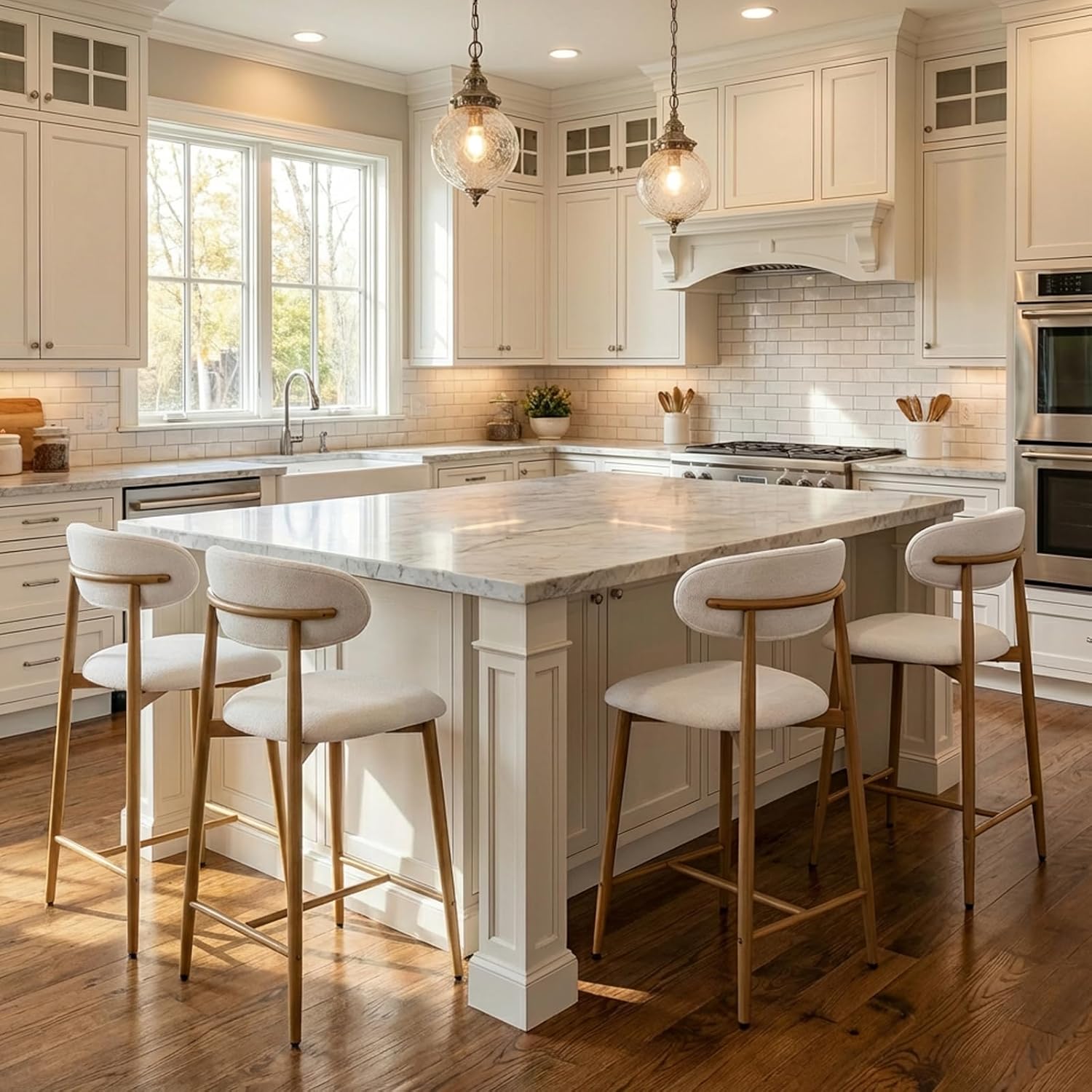 Bar stools set of 4:This kitchen bar stools features an ergonomic curved design that perfectly aligns with the body's natural contours, delivering all-day comfort. It's equally suited for extended dining sessions or casual relaxation