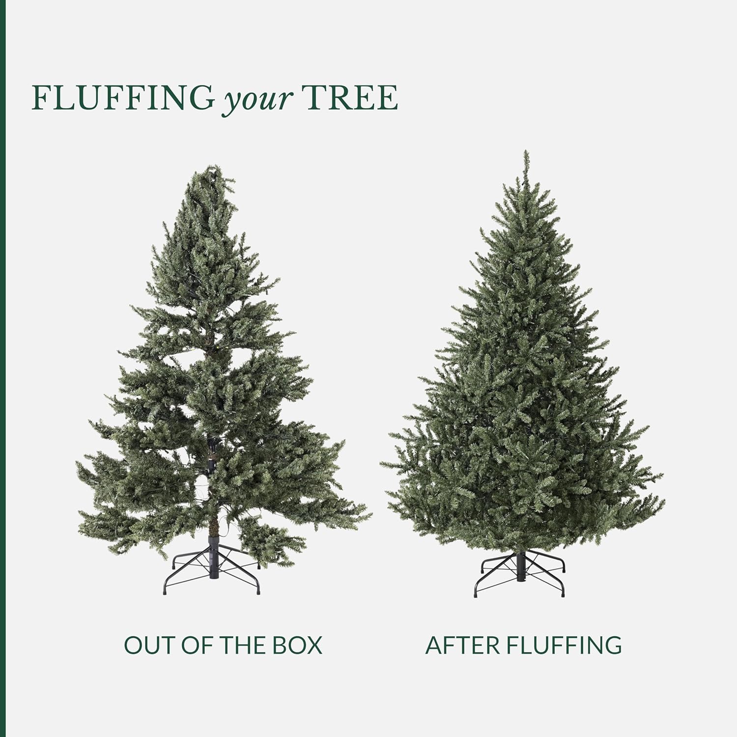 Proper Fluffing: This realistic artificial tree ships compressed in one protective box, requiring proper tree branch shaping section-by-section from bottom to top - meticulous heirloom-quality craftsmanship reveals decades of luxurious christmas tree beauty with proper fluffing of your investment-grade pre-lit centerpiece