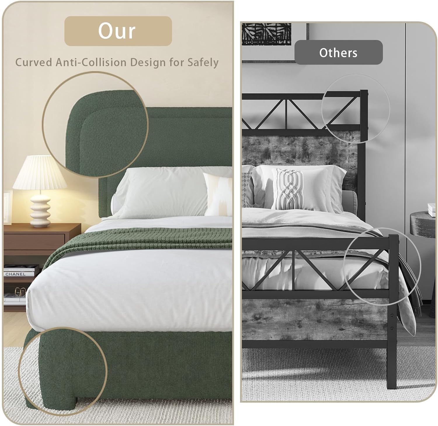 Give More Protection: Rounded edges give this king bed frame with headboard an organic, cloud-like silhouette. It contains beautiful appearance while also reducing daily collision damage. It is very suitable for both teenagers and adults