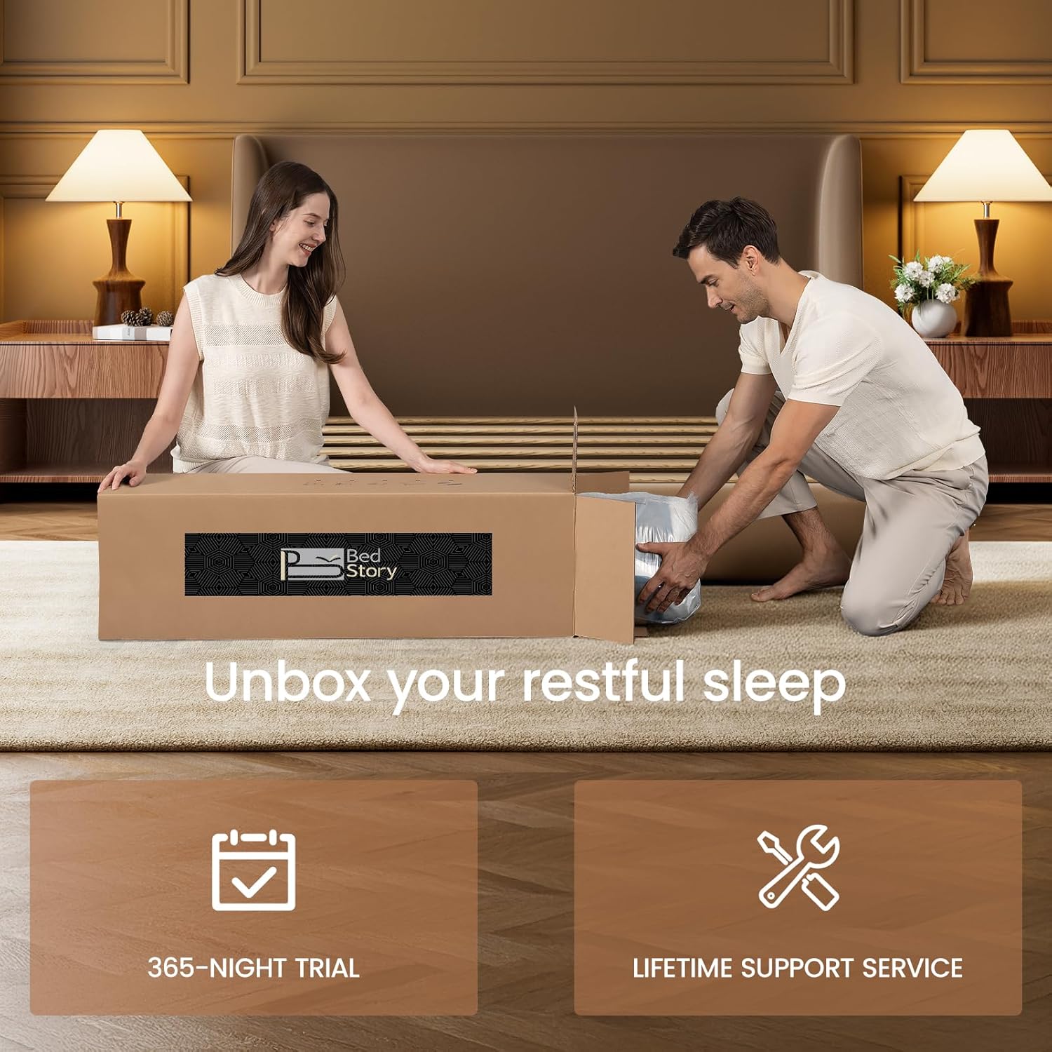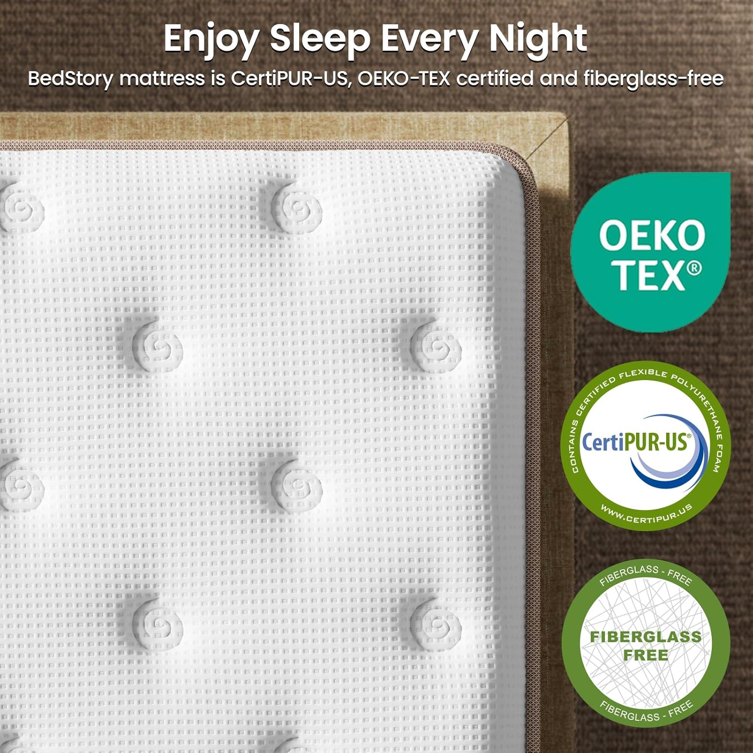 Certified Safe Materials & Suppotive Firm ConstructionCrafted with CertiPUR-US certified foam and a fiberglass-free design, the king mattress 14inch in a box meets high safety and stable standards. The 60% stronger reinforced hybrid structure resists sagging and maintains consistent firmness, delivering long-lasting comfort and reliable support night after night.